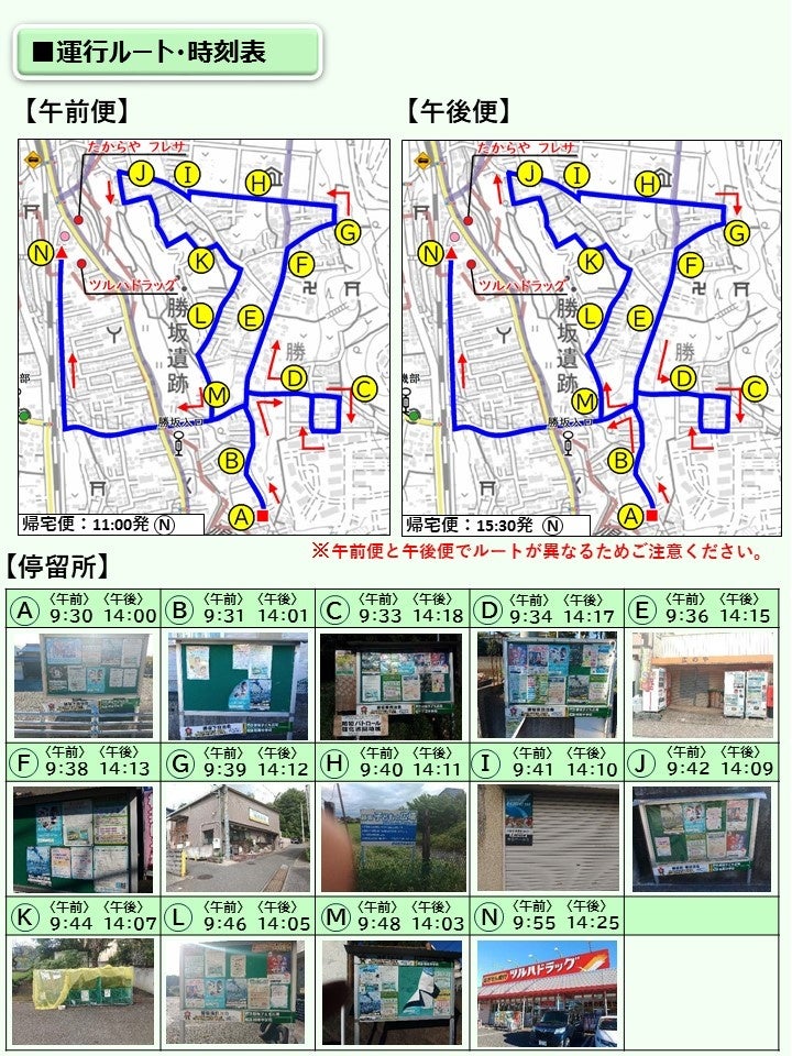 【運行方法】定時定路線型(バスと同じような運行で予約は不要です)