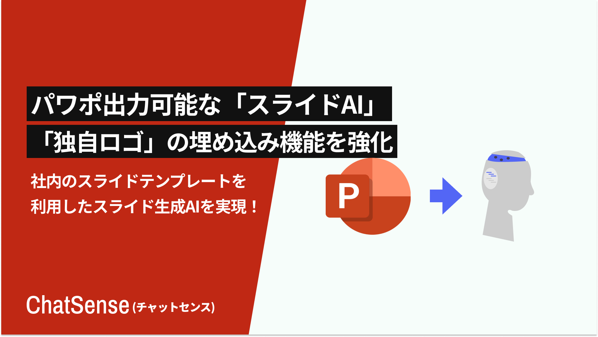 株式会社ナレッジセンスは、セキュアな環境でChatGPTを活用できる法人向けAIエージェントサービス「ChatSense(チャットセンス)」を提供しております。この度ChatSenseは、好評いただいているスライド生成AI機能において、スライドへの企業ロゴ出力精度を大幅に強化したことをお知らせいたします。