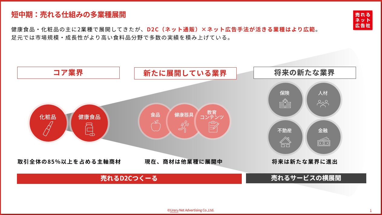 当社はこれまで、取引の中核を成すD2C領域(健康食品・化粧品)に強みを有しつつ、直近では日用品(腕時計、カミソリ〈髭剃り〉、美顔器 など)へ展開。さらに医療系・クリニック系(AGA治療/美容オンライン診療)へ領域を広げてまいりました。今回の医療脱毛の追加により、案件領域の多角化を一段と加速させます。