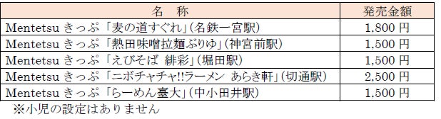 名古屋鉄道は、中京テレビ放送株式会社(本社:名古屋市中村区 代表取締役社長:伊豫田祐司)と連携し、「名古屋ラーメンまつり2025」の実施に合わせて、「Mentetsuきっぷ」を発売します。 同きっぷは、対象店舗の最寄駅までの「名鉄電車往復乗車券」とその店舗で使用できる「ラーメン引換券」、集めるとコラボグッズと交換できる「プレゼント引換券」がセットになったおトクなきっぷです。 対象店舗は「名古屋ラーメンまつり」に出店した実績のある名鉄沿線の人気ラーメン店5店舗で、ラーメン引換券を使用すると通常よりおトクに人気のラーメンを食べることができます。 この機会に、名鉄電車に乗って美味しいラーメン巡りの旅をお楽しみください。 詳細は下記のとおりです。