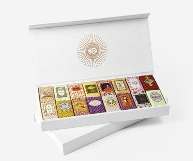 このボックスには、クラシコ コレクションを構成する 16 種類のソープが収められています。マンゴーとピスタチオの種子油を使用したカラフルなソープは、パッケージデザインに強いインスピレーションを与えたベル エポックの華やかな世界へと私たちを誘います。