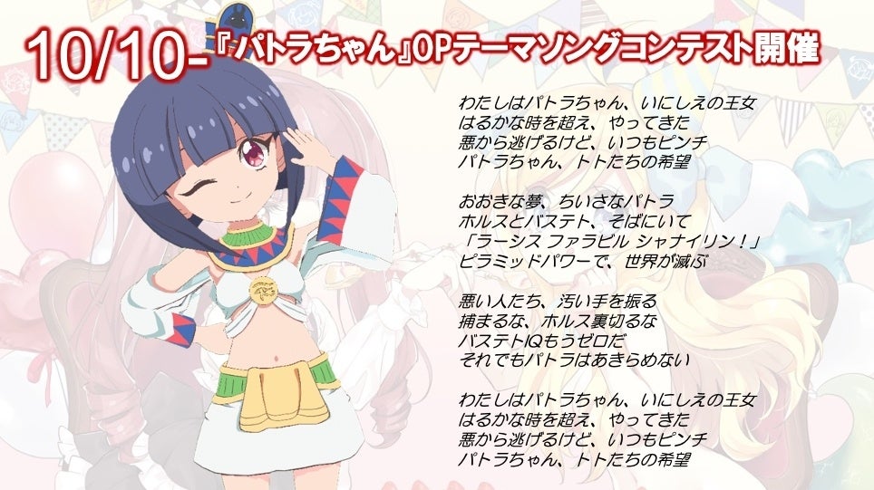 『パトラちゃん』のOPテーマソングをニコニコで大募集、公式提供の歌詞や完全オリジナルの歌詞の楽曲でも応募可能