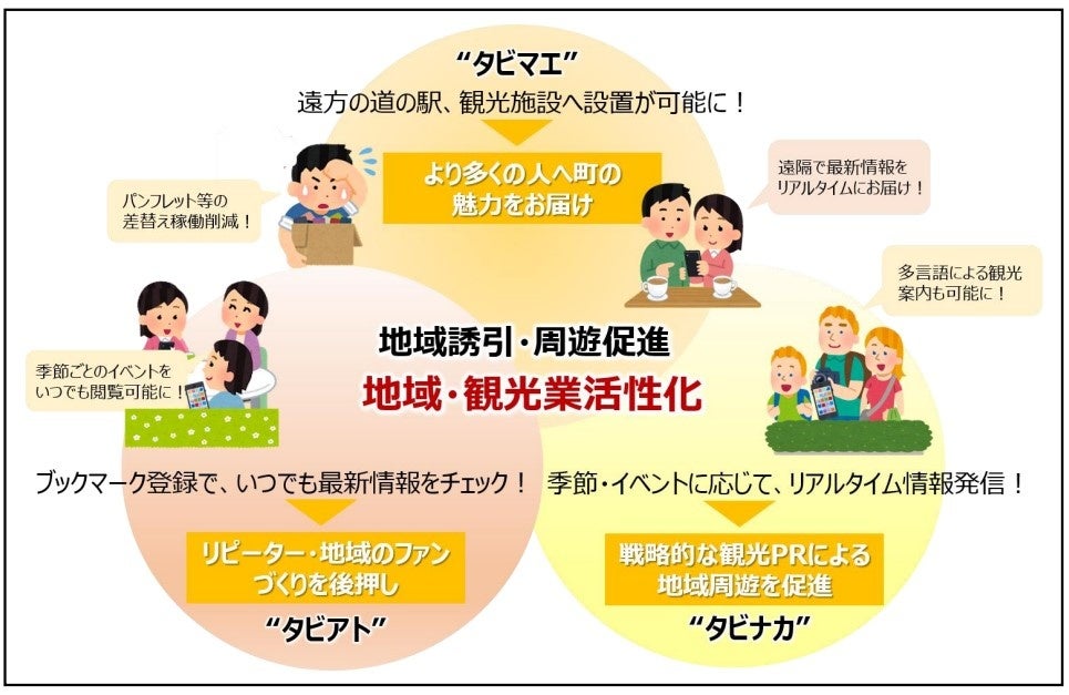 (1)観光客等の誘引・増加を目的とする時節等を捉えたタイムリーな情報を、当該地域内外に設置した「スマートプレート™」を介して、コンテンツの量に制限無く、会員事業者が遠隔から簡易でスピーディーに発信・更新可能です。