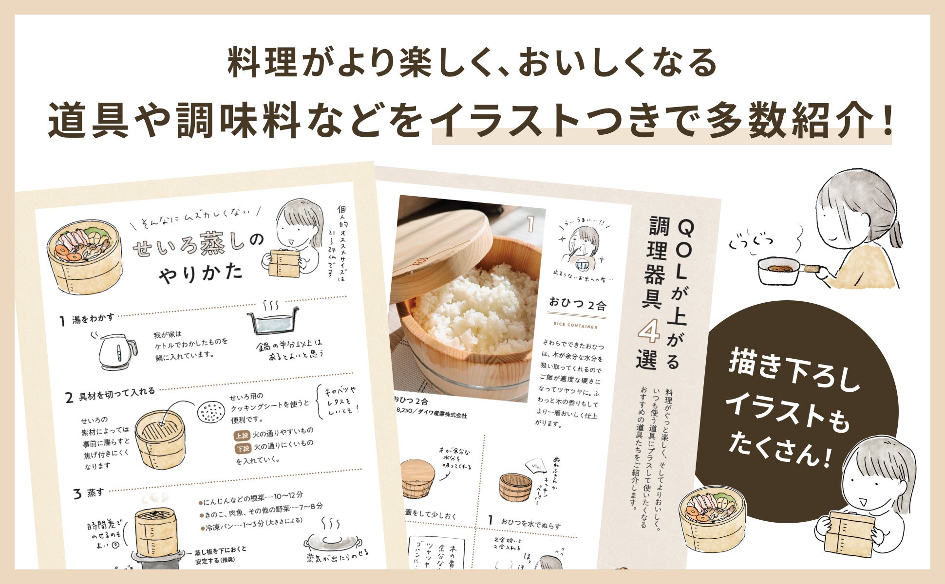 手書きの文字と柔らかい雰囲気のイラストで日々の幸せをSNSに投稿。イラストや絵日記形式で食について綴っている。せいろの使い方やおしゃれなレシピが人気を集め、現在総フォロワー数は12万人を超える(2025年12月現在)。