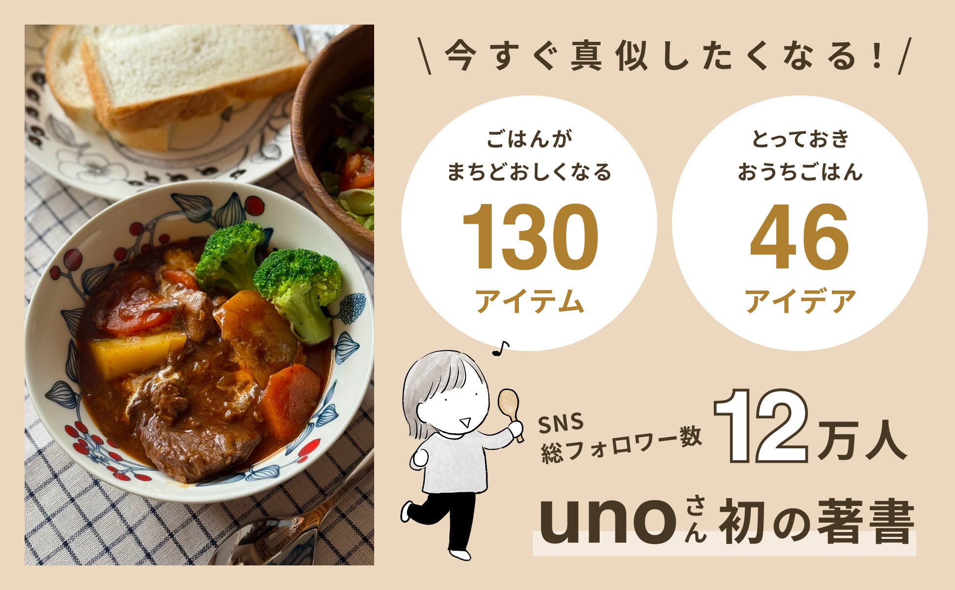 SNS総フォロワー数12万人超のunoさんによる、日々のごはんを楽しむためのヒントが1冊になりました。