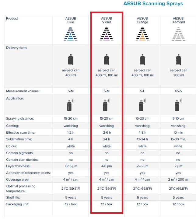3Dスキャン用スプレーのAESUBから、Violet が新発売!