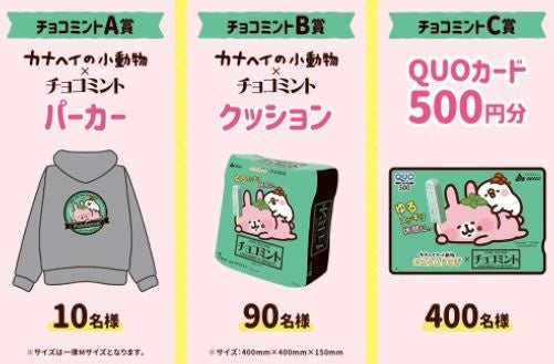・応募方法:パッケージ裏面の専用応募はがき⦅378円BLACK(ブラック)、378円チョコミントのみ⦆、または郵便はがきに商品に付いている応募券を貼り必要事項を記入し、ご希望の賞に必要な分の応募券をセロハンテープで貼り付け、所定の郵便料金の切手を貼ってご応募ください。