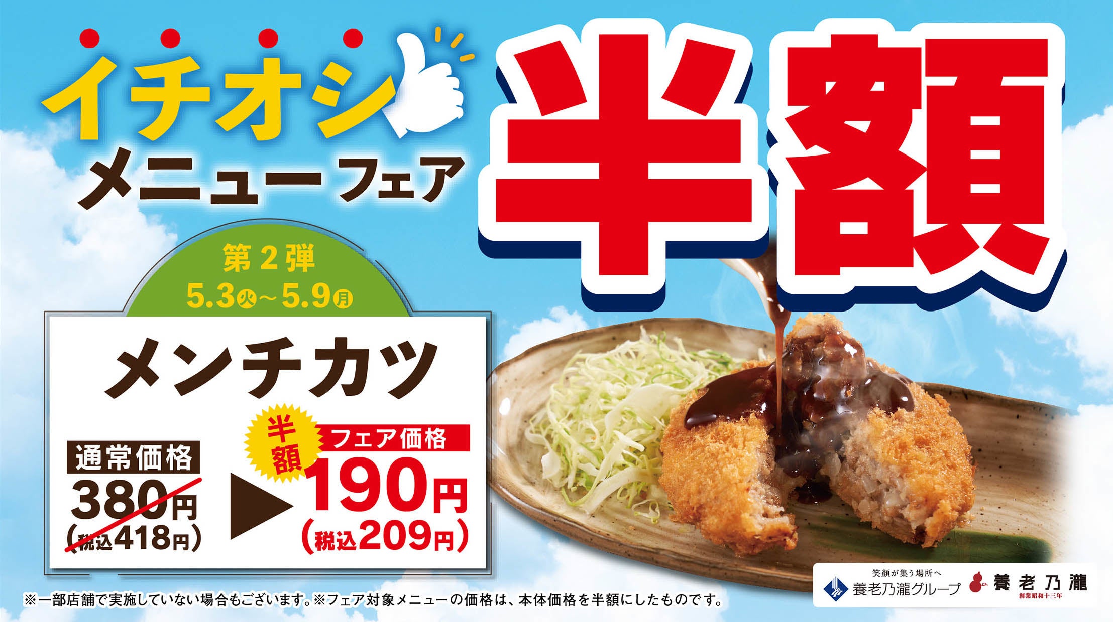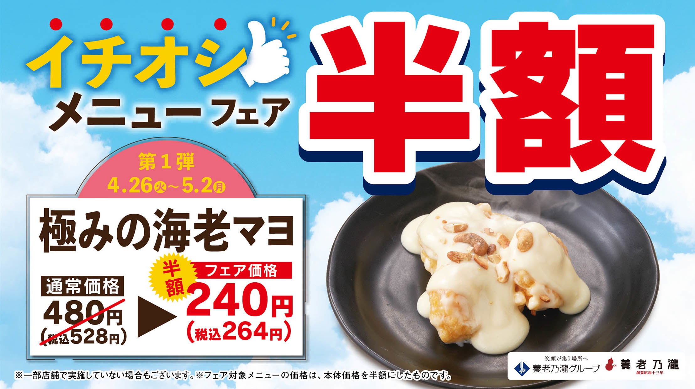 養老乃瀧グループ『半額イチオシメニューフェア』開催