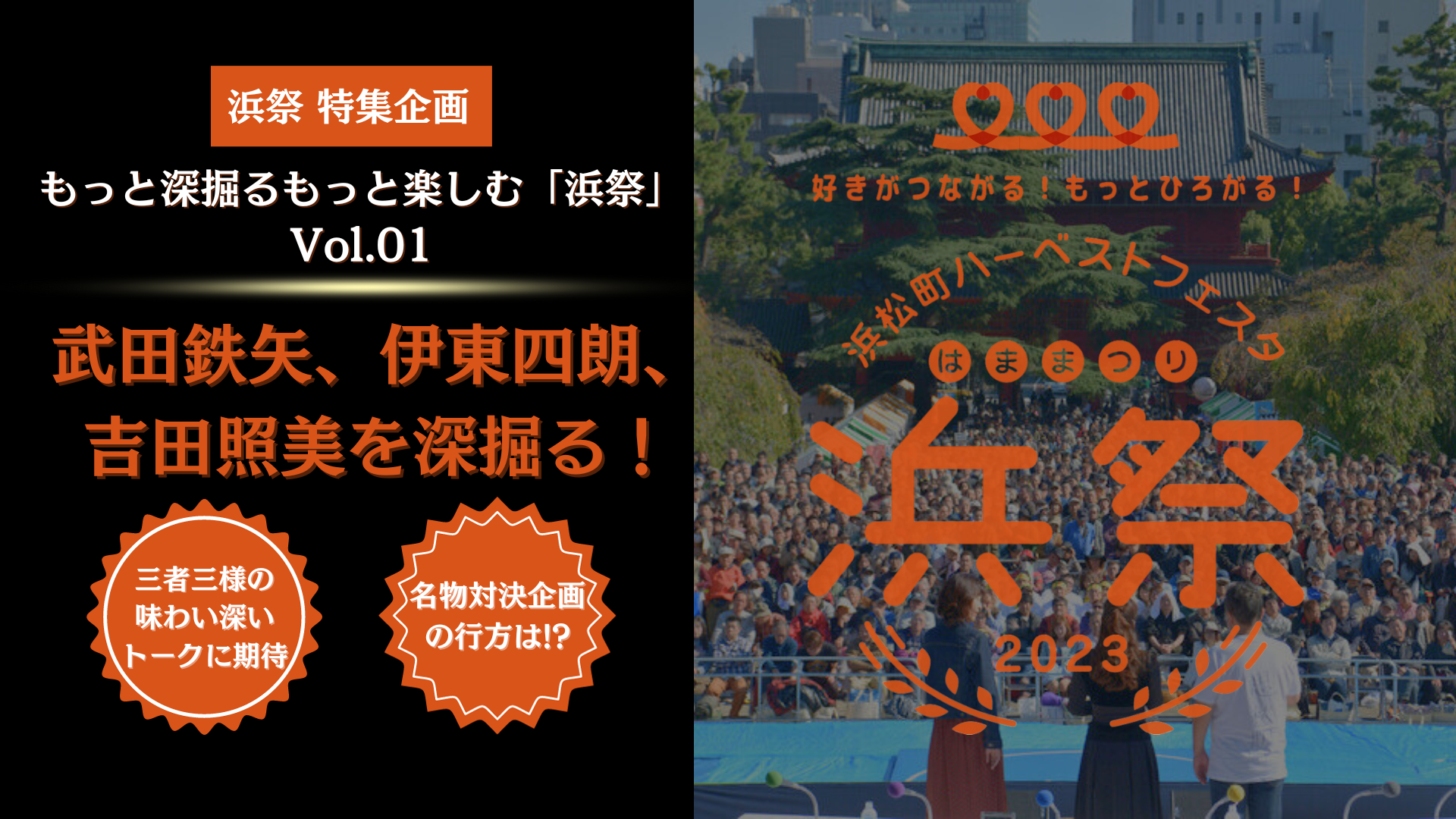 【特集企画】もっと深掘る、もっと楽しむ「浜祭」Vol.01 武田鉄矢、伊東四朗、吉田照美を深掘る!三者三様の味わい深いトークに期待。そして浜祭名物「対決企画」の行方は!?