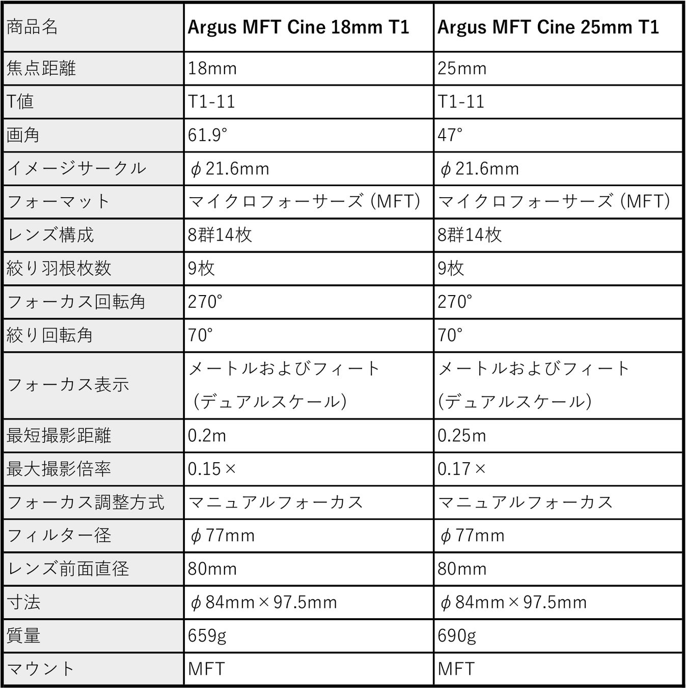 Argus MFT レンズ単品:各152,000円前後 / 2本バンドルセット:273,000円前後