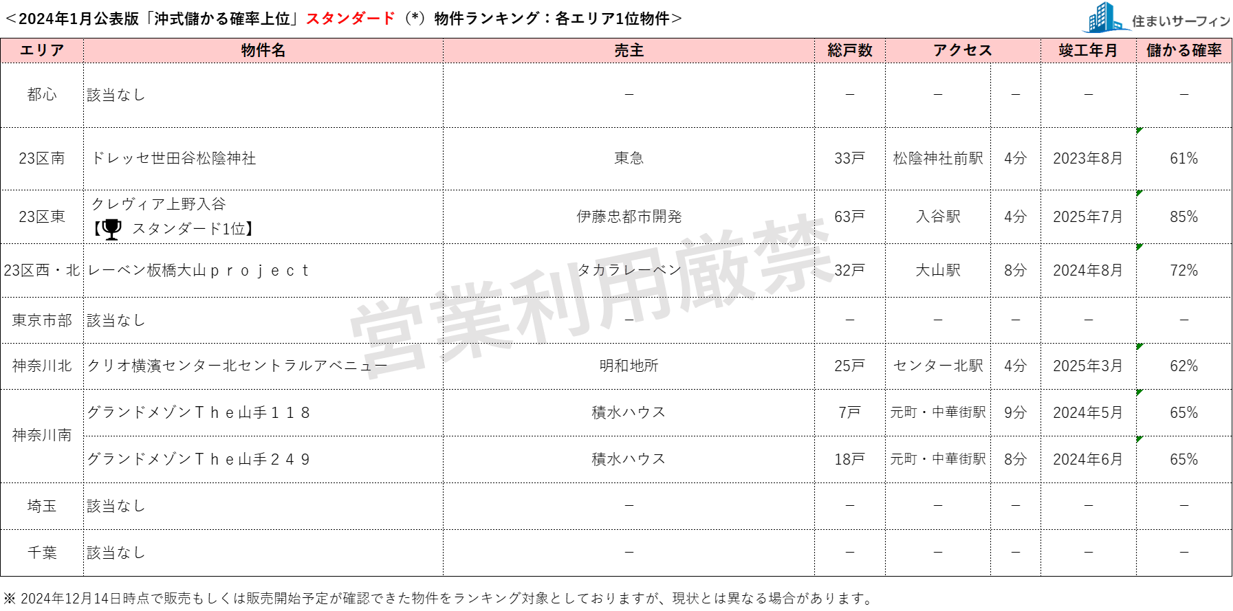 1月公表分は、2023年12月14日時点で販売もしくは販売予定が確認できた物件を対象としています。