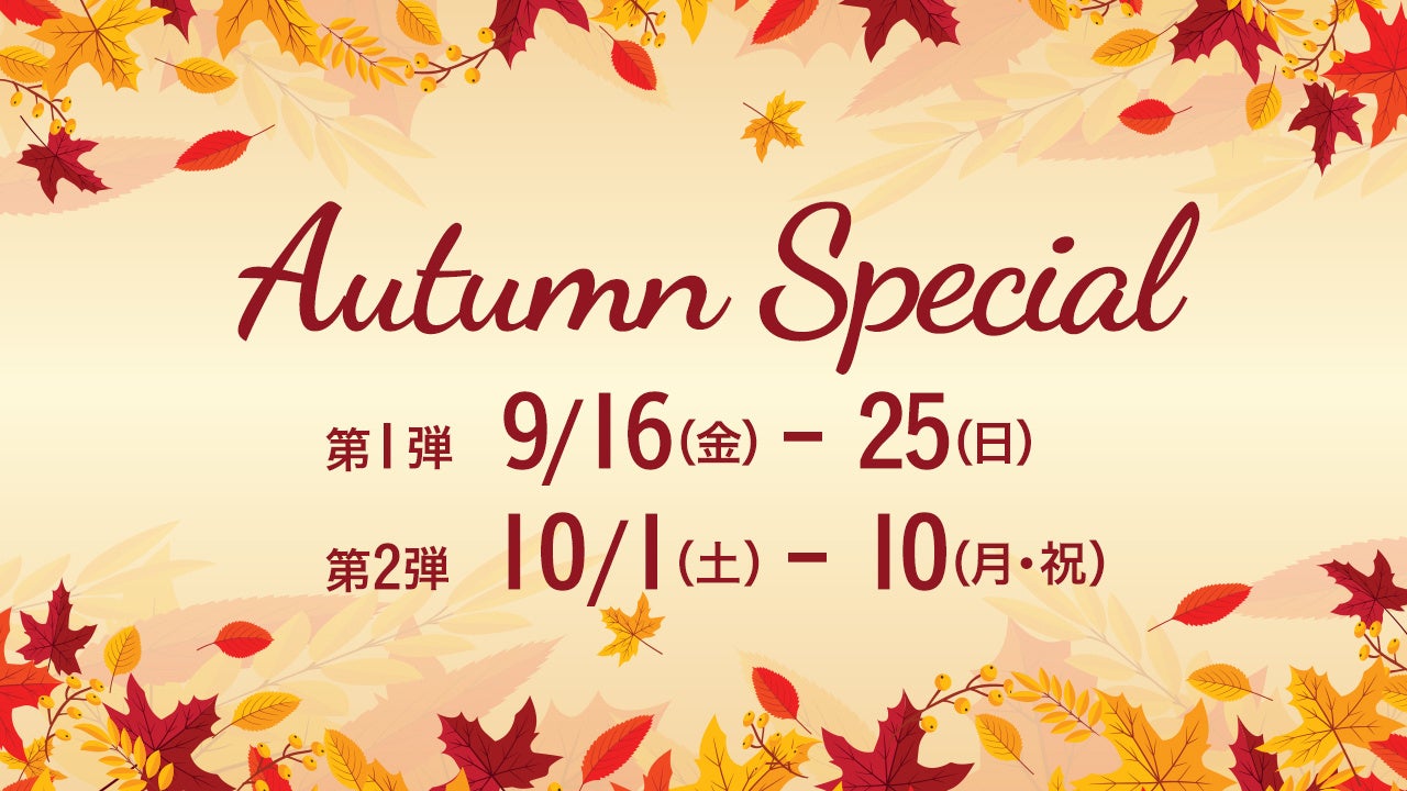 秋は着こなしの幅が一気に広がり、新しいファッションへの挑戦や、屋外でのアウトドアやスポーツも楽しめる季節です。9月と10月の2回にわたり開催される「Autumn Special」では、人気ブランド総勢約90店舗が参加し、お得な企画やお買い得品をご用意します。また、期間中に佐野プレミアム・アウトレット内にて合計30,000円以上のお買い上げレシート(税込・当日のみ合算可)をインフォメーションセンターにてご提示いただくと、オリジナルノベルティをプレゼントします。(先着順・無くなり次第終了・お一人様おひとつ)