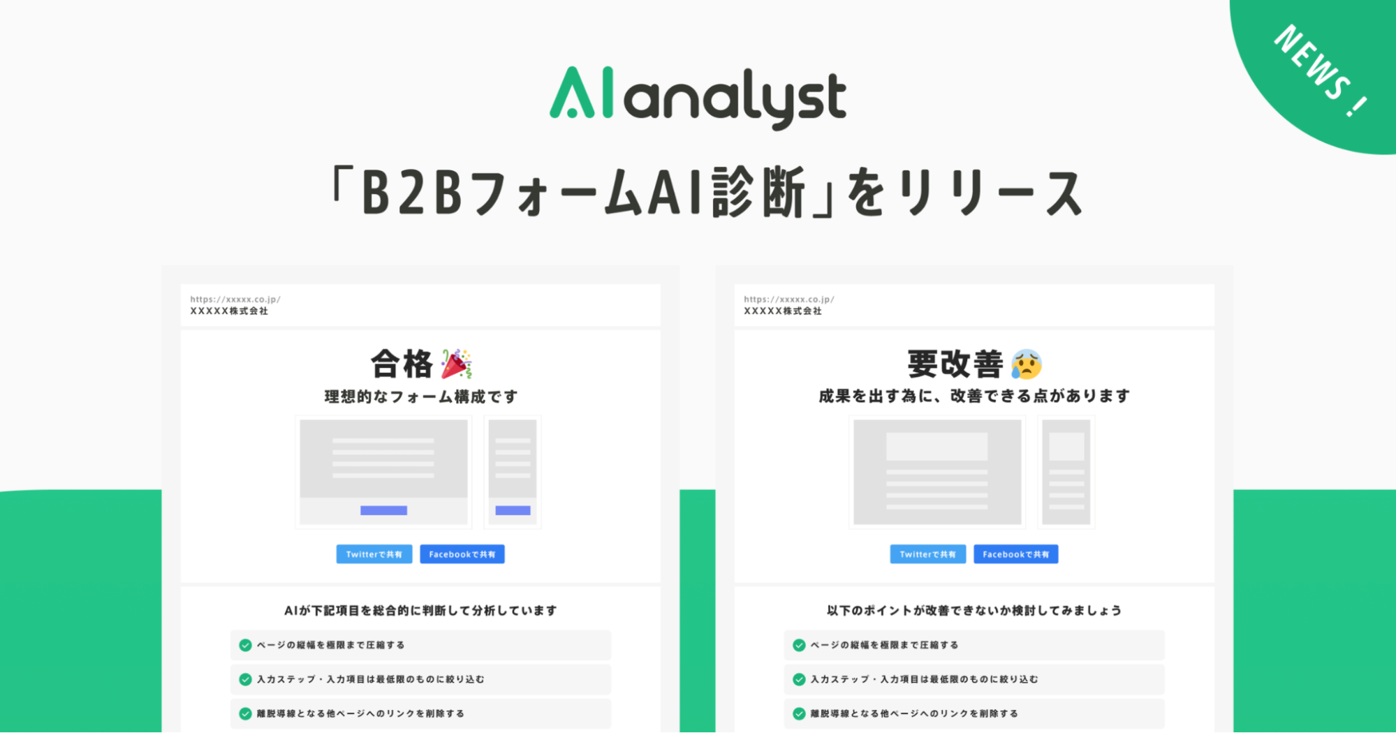 業界初、人工知能がフォームを評価する「B2BフォームAI診断」を無料提供開始。累計利用数3.813件の「B2BトップページAI診断」に続く、AIによるマーケティング診断の第2弾を公開