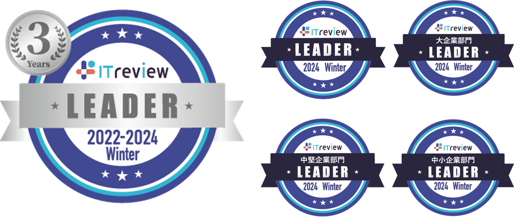 1月に発表された「ITreview Grid Award 2024 Winter」では、ITreviewに集まった約12万件のレビューをもとに、顧客満足度と認知度の双方が優れた製品を「Leader」として表彰、バッジが発行されています。ITreviewのLeaderは、既に多くの利用者から支持を得ている証であり、名誉ある称号とされております。