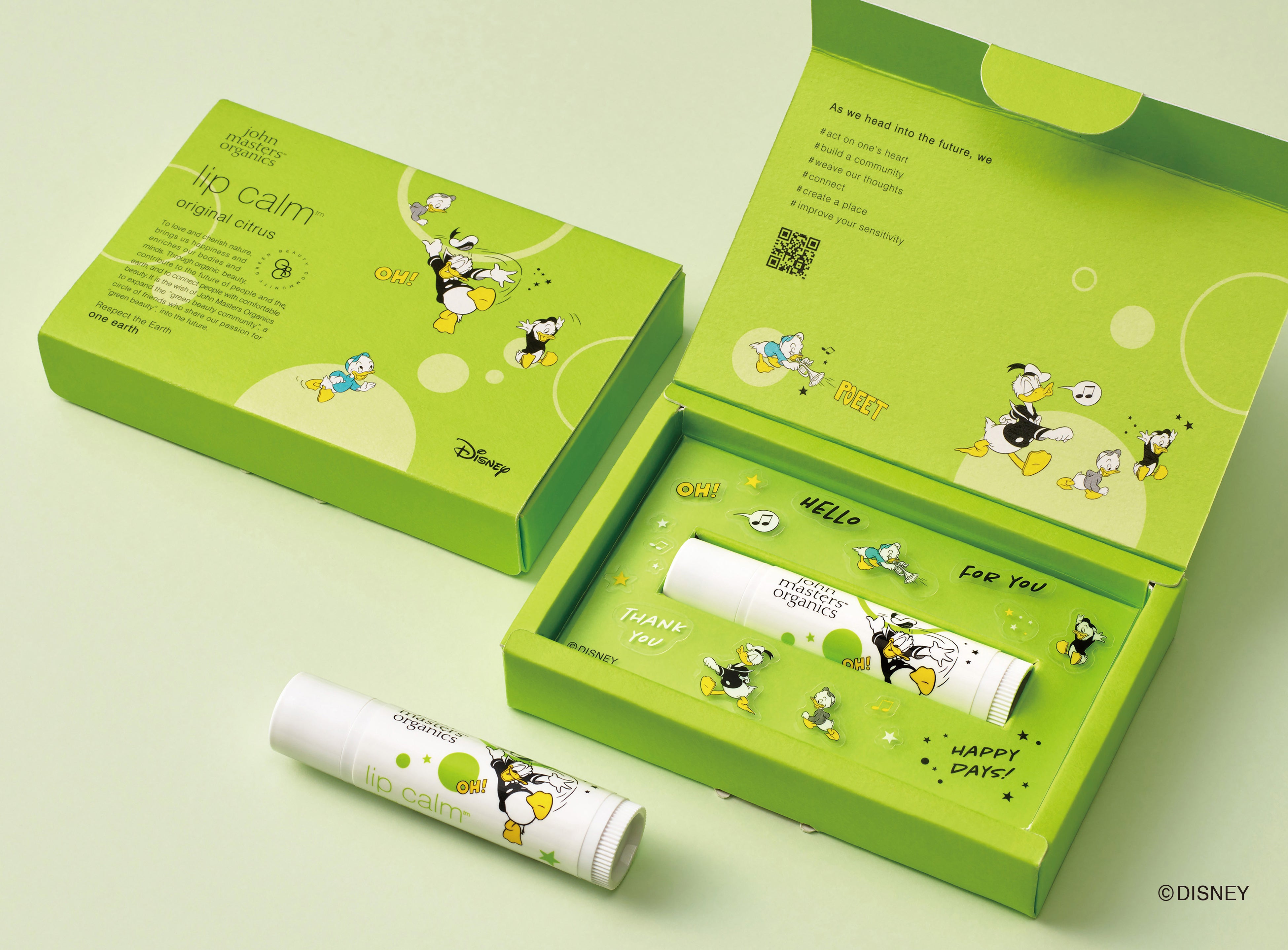 すっきりと爽やかな香りのオリジナルシトラスは、グリーンを基調としたカラーでデザイン。リップカーム本体には元気いっぱいのドナルドダックが描かれています。