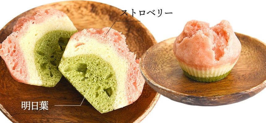 春の訪れを楽しむ蒸しケーキです。豆乳を使用し、ほんのりとしたやさしい甘さが魅⼒です。ほどよく密度を感じる、しっとりとした⼝あたりの蒸し⽣地を、ピンク、⽩、⻩緑の春らしいカラーで仕上げました。