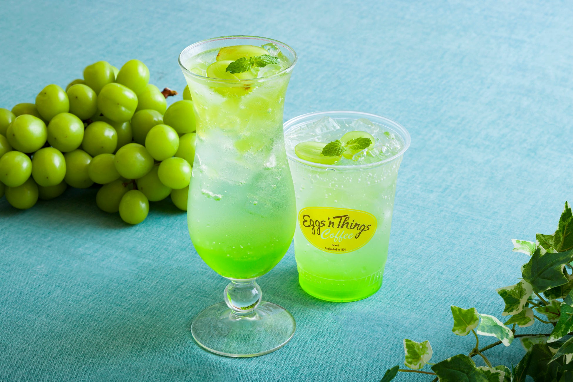 さらに、ジューシーなシャインマスカットをのせた爽やかな炭酸の『シャインマスカットスカッシュ』もご用意しました。この季節だけの特別なシャインマスカットを存分にお楽しみください。