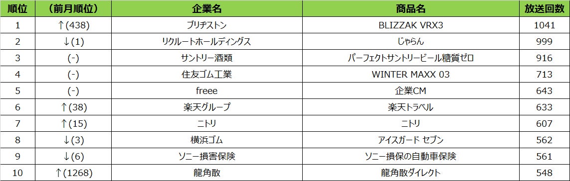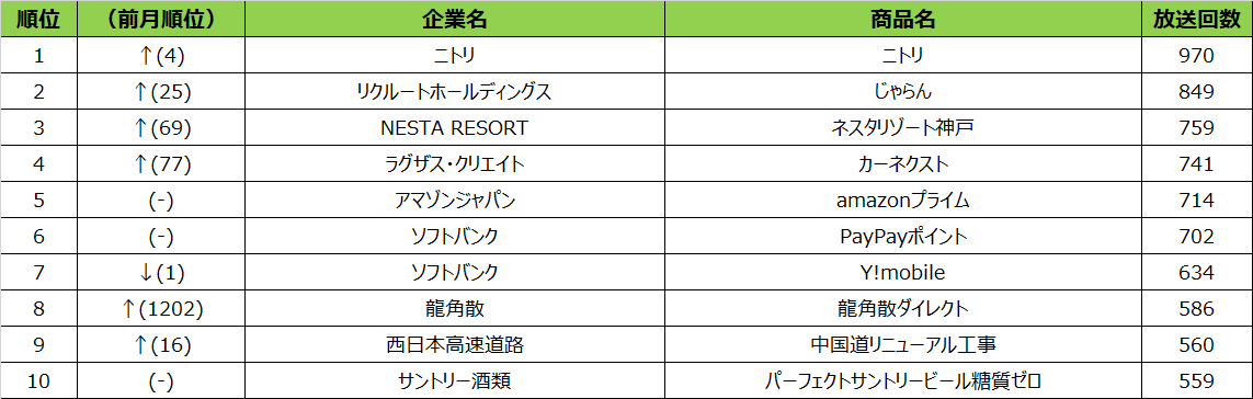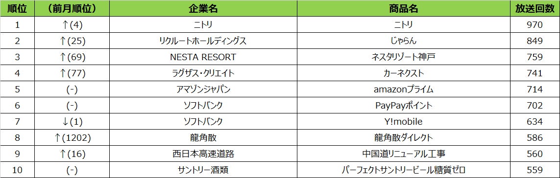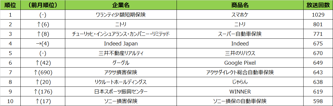 - 2022年10月度 商品別テレビCM放送回数(全国地上波25局、BS放送6局合計)