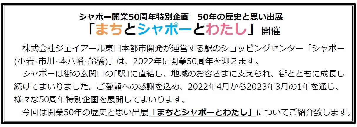 50年のまちの移り変わりやシャポーの歴史のご紹介と、お客さまからのメッセージも募集いたします。