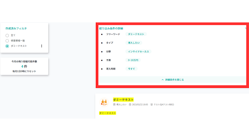 ・フィルタ(絞り込み条件)の詳細を表示