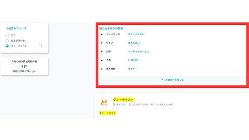 ユーザーが投稿したニーズを閲覧したり、自分のニーズを投稿したりすることができる機能です。マッチする投稿からコンタクトを取ることも可能です。