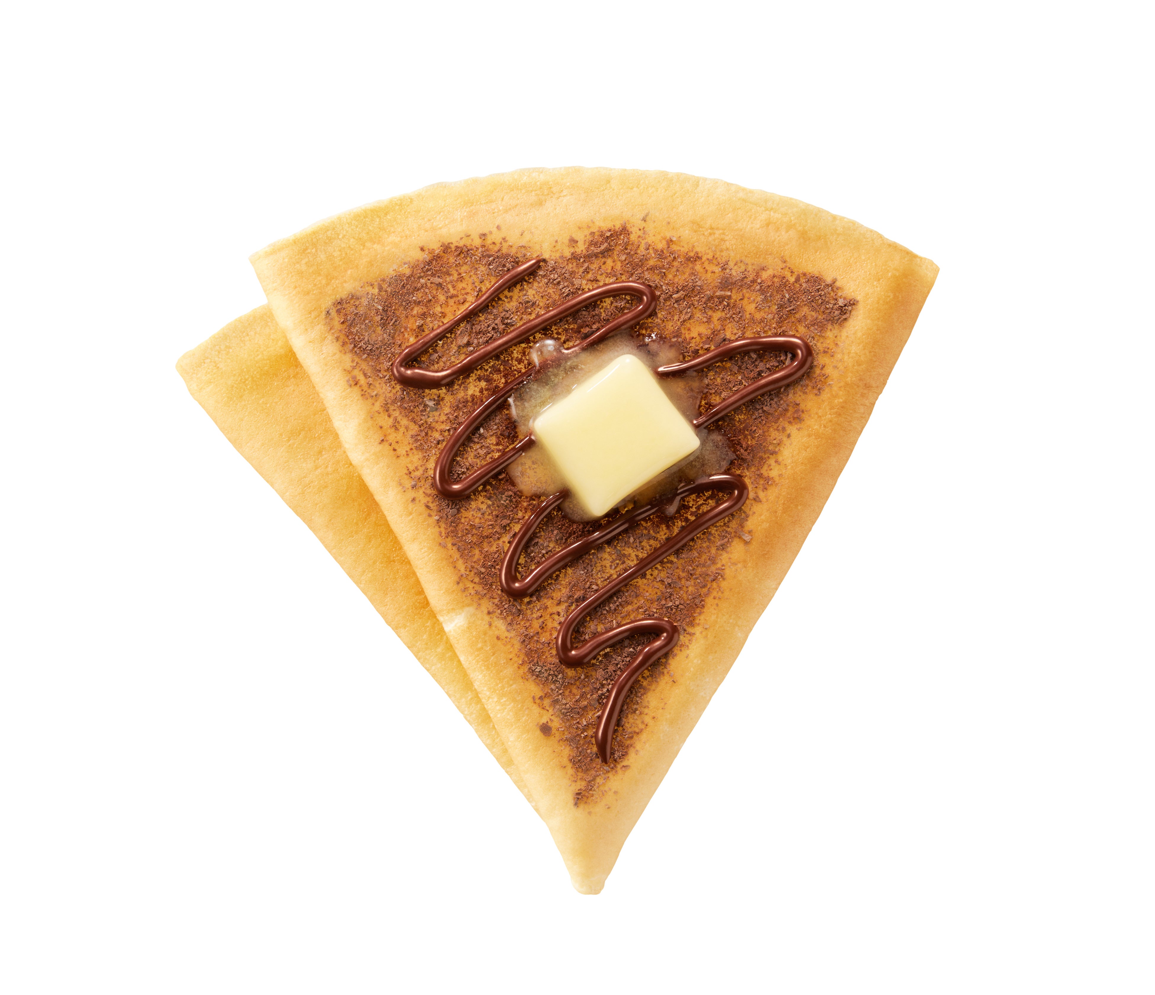 ゴディバの濃厚なミルクチョコレートを、シンプルなプレーン生地が引き立てます。焼きたての生地ととろけるチョコレートが味わえるクレープ。