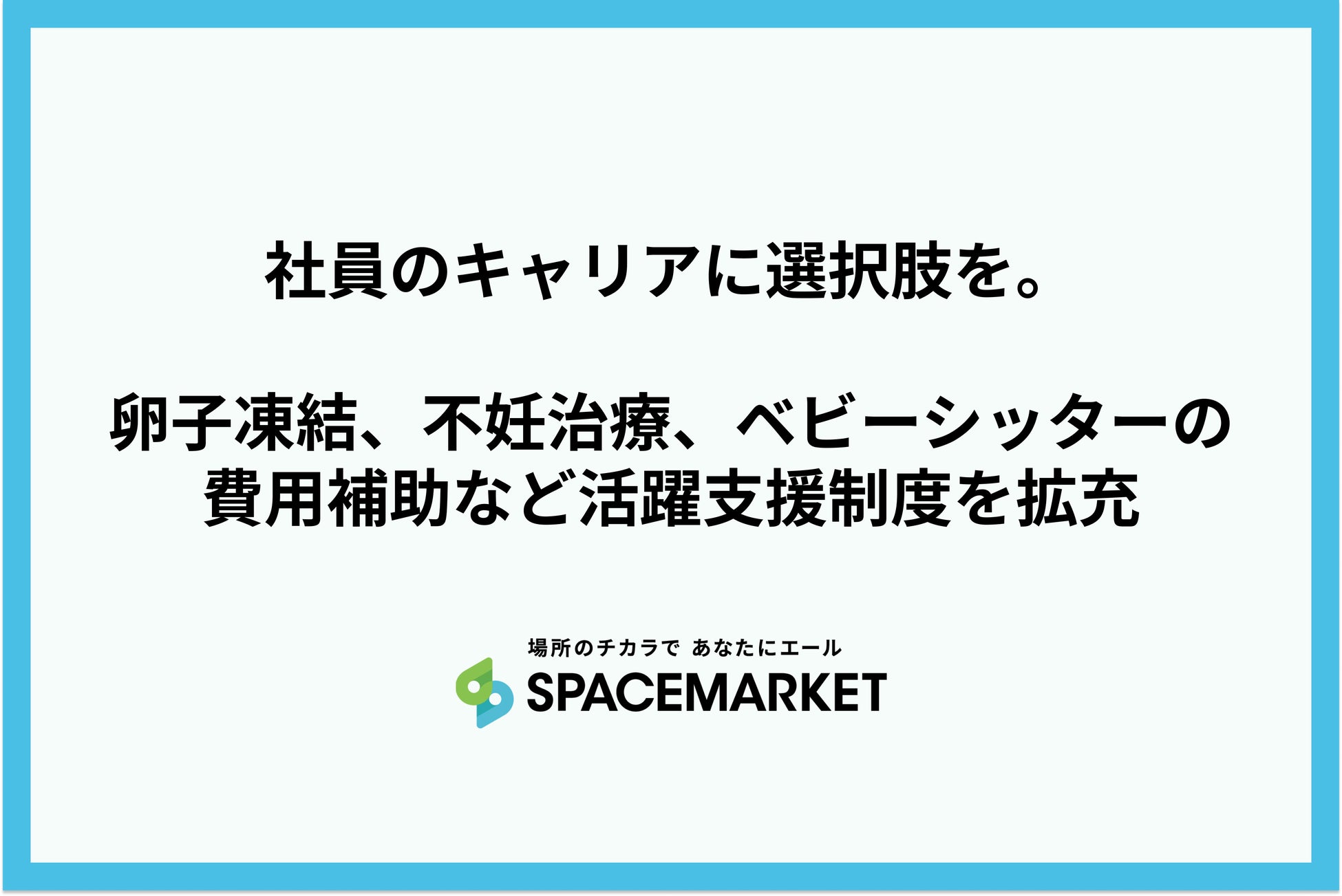 あらゆるスペースを貸し借りできるプラットフォーム「スペースマーケット」を運営する株式会社スペースマーケット(本社:東京都渋谷区、代表取締役社長:重松大輔、以下、スペースマーケット)は、誰もが安心して働ける環境づくりとして、社員の活躍支援制度「ベビカムサポート」と「キッズサポート」を新設したことをお知らせいたします。