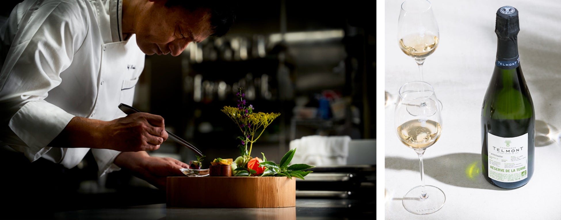 “母なる自然の名のもとに(In the Name of Mother Nature)” をすべての活動の指標とし、1世紀以上、4世代にわたって真摯に自然と向き合いシャンパーニュ造りを続けるメゾン・テルモン。この度コラボレーションを行う「山荘天の里」は、四季が織りなす自然に恵まれた山里に佇み、近くには世界文化遺産「丹生都比売神社」が鎮座する1日8組限定の隠れ宿です。宿泊ゲストのみならずご利用可能なレストラン ヴェルナタールは、”フレンチと和食の融合”をテーマに、高野山の麓の恵みを生かした旬の素材を使った目にも鮮やかな料理の数々を、ゆったりとした空間でお愉しみいただけます。