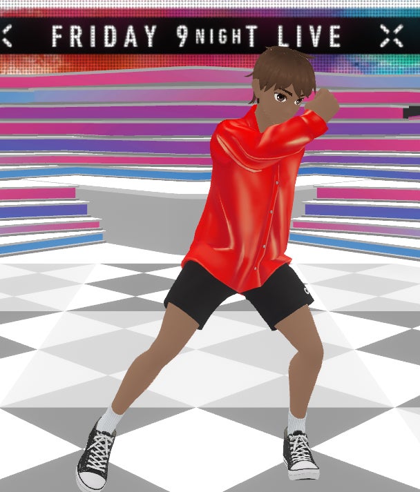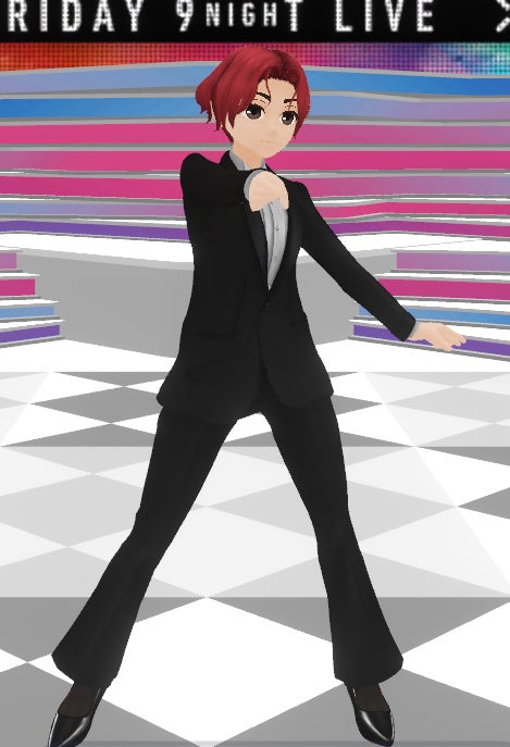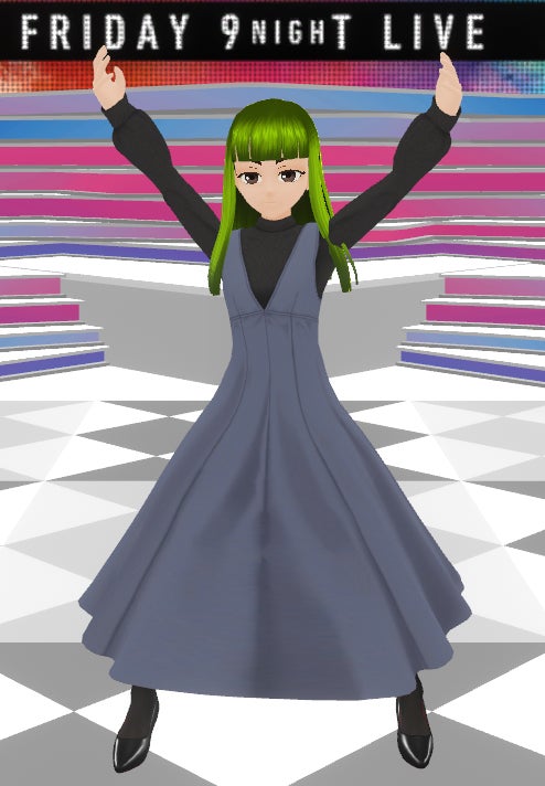 人気アーティストが生放送中に階段を降りてくる気分を自分のアバターで味わうことができます。