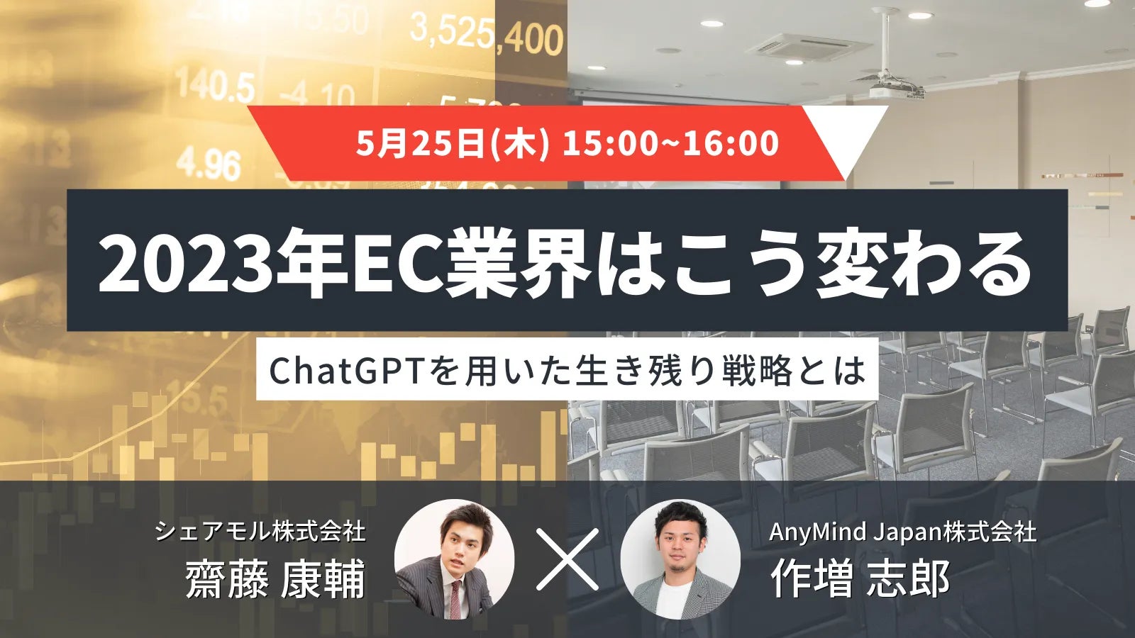 【AnyMind Group × シェアモル株式会社】「2023年EC業界はこう変わるーChatGPTを用いた生き残り戦略とはー」|EC事業者向け無料オンラインセミナーを5月25日に開催