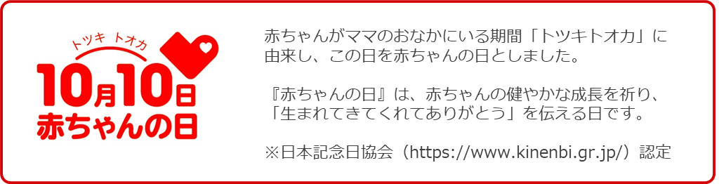 赤ちゃんがママのおなかにいる期間「トツキトオカ」に由来し、この日を赤ちゃんの日としました。