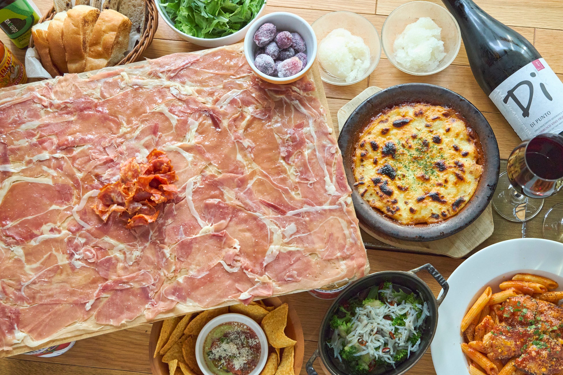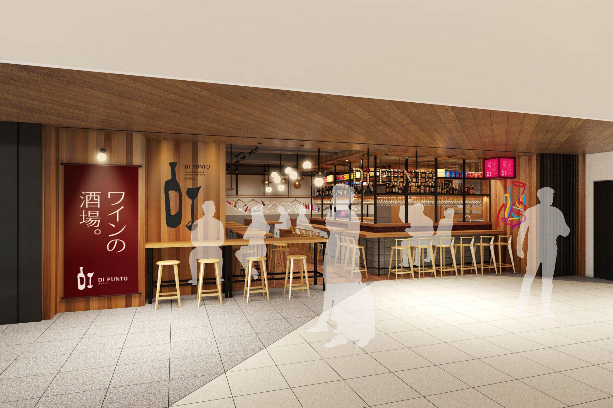 「ワインの酒場。Di PUNTO(ディプント)」は、「Di PUNTO」とは、日常と非日常の間にある句読点(PUNTO)。居心地のいい空間で、気軽にワインとお料理を楽しめる、上質な活気あふれる地域密着型のワイン酒場です。