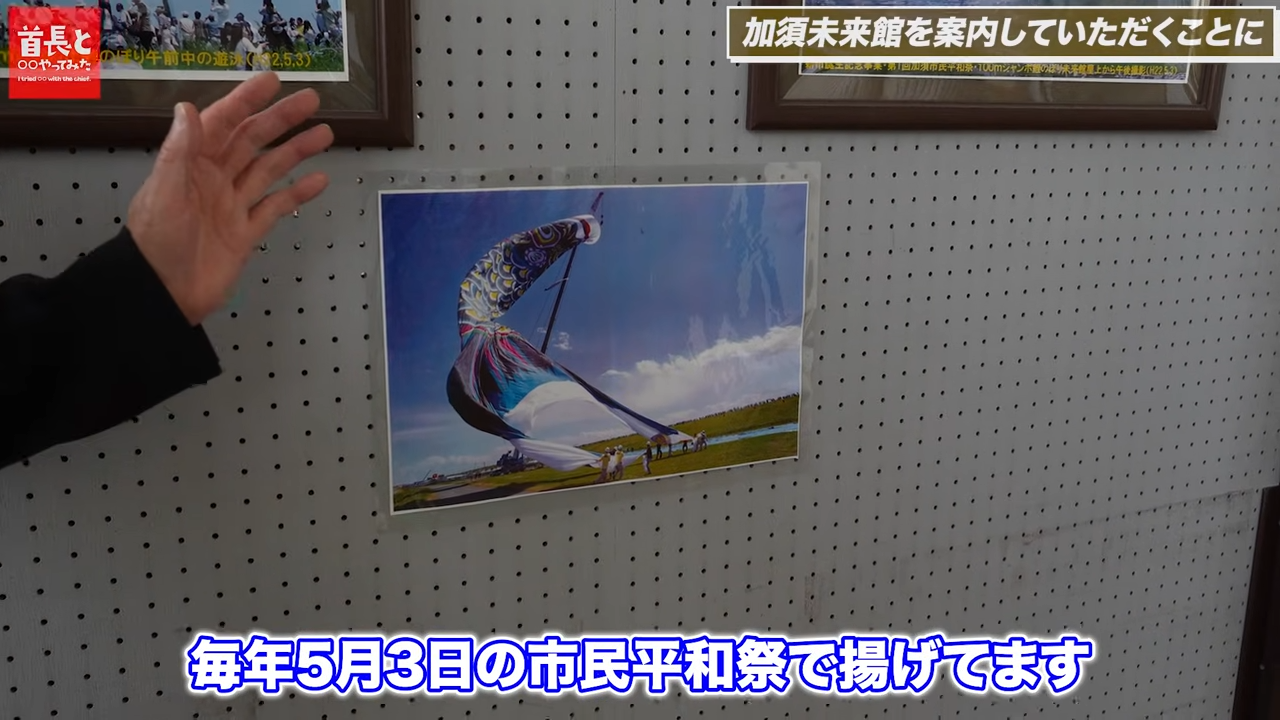 今回の『首長と○○やってみた』では、加須未来館貯蔵のお宝や、ジャンボこいのぼりについて見学します。