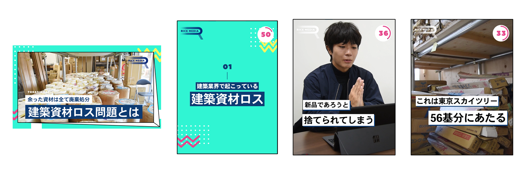RICE MEDIAは「1分間で社会を知るメディア」をコンセプトに、SDGsや社会課題に関する情報を1分動画で配信するSNSメディアです。社会的な情報を広く行き渡らせていくため、SNSでの拡散を促す設計となっております。