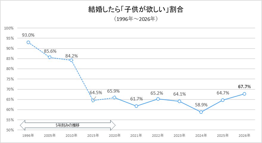 ・全体の67.7%は「結婚したら子供が欲しい」と過去10年間で最も高い回答割合に!