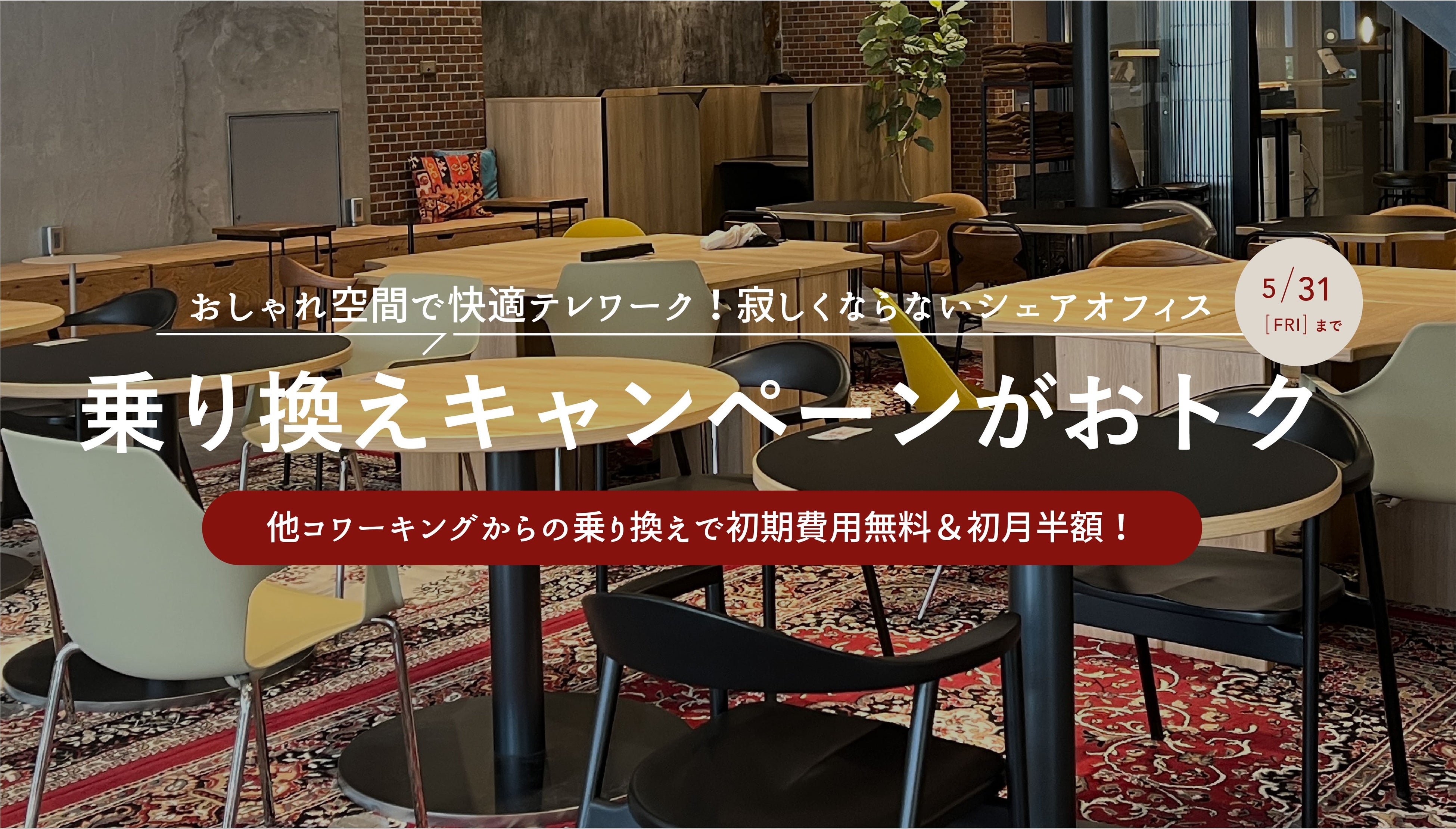 そんな方に向け、他コワーキングからの変更を検討している方を対象とした「コワーキング乗り換えキャンペーン」を実施します。
