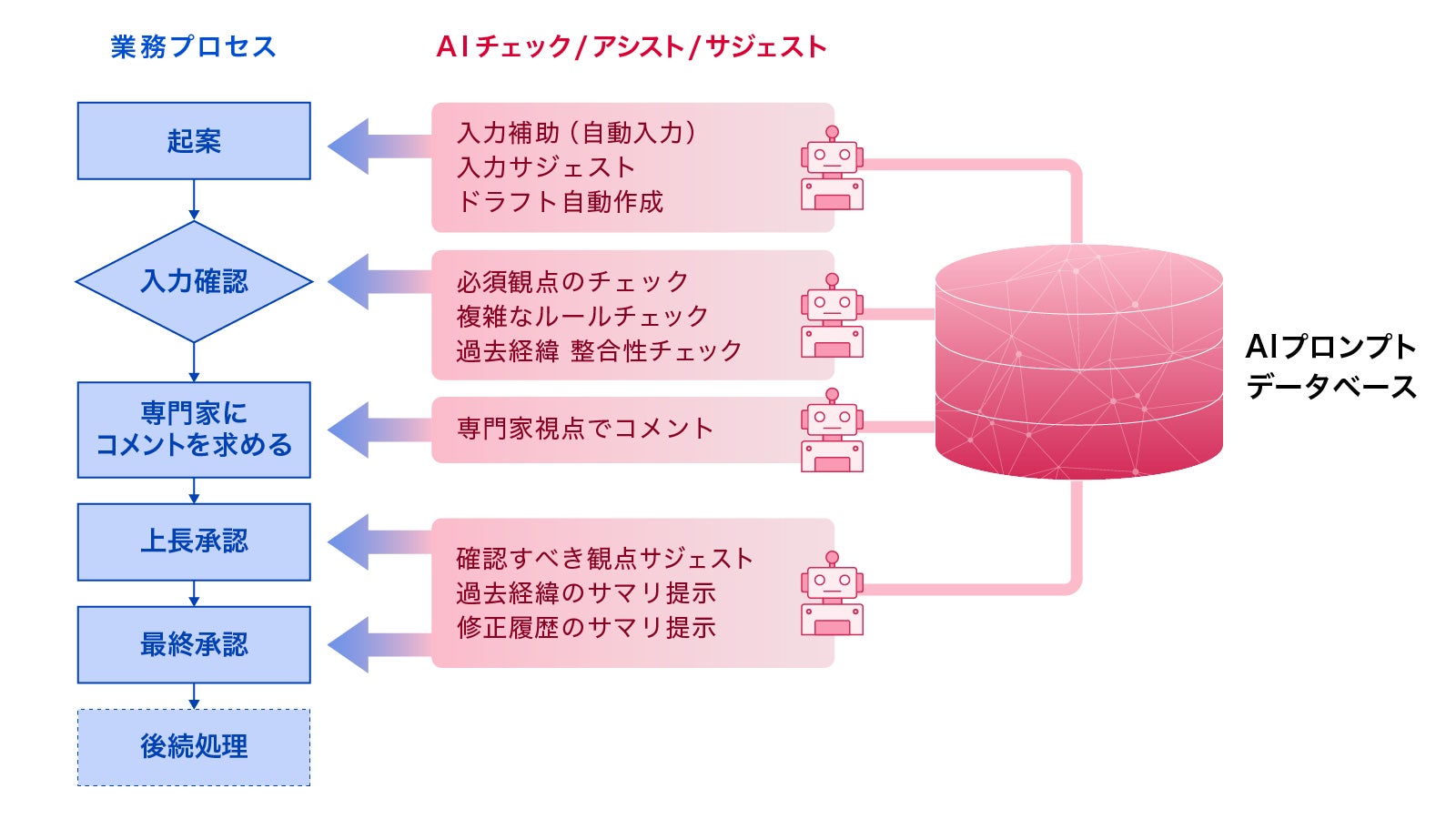 2026年4月の第1弾では入力補助・チェックなど実務的なAI支援機能を提供、年内に予定している第2弾では、SmartDB(R)内に蓄積したデータや権限情報を活用した、より高度な判断支援へ拡張する計画です。 プロンプトデータベースも段階的にアップデートし、機能全体を継続的に進化させていきます。