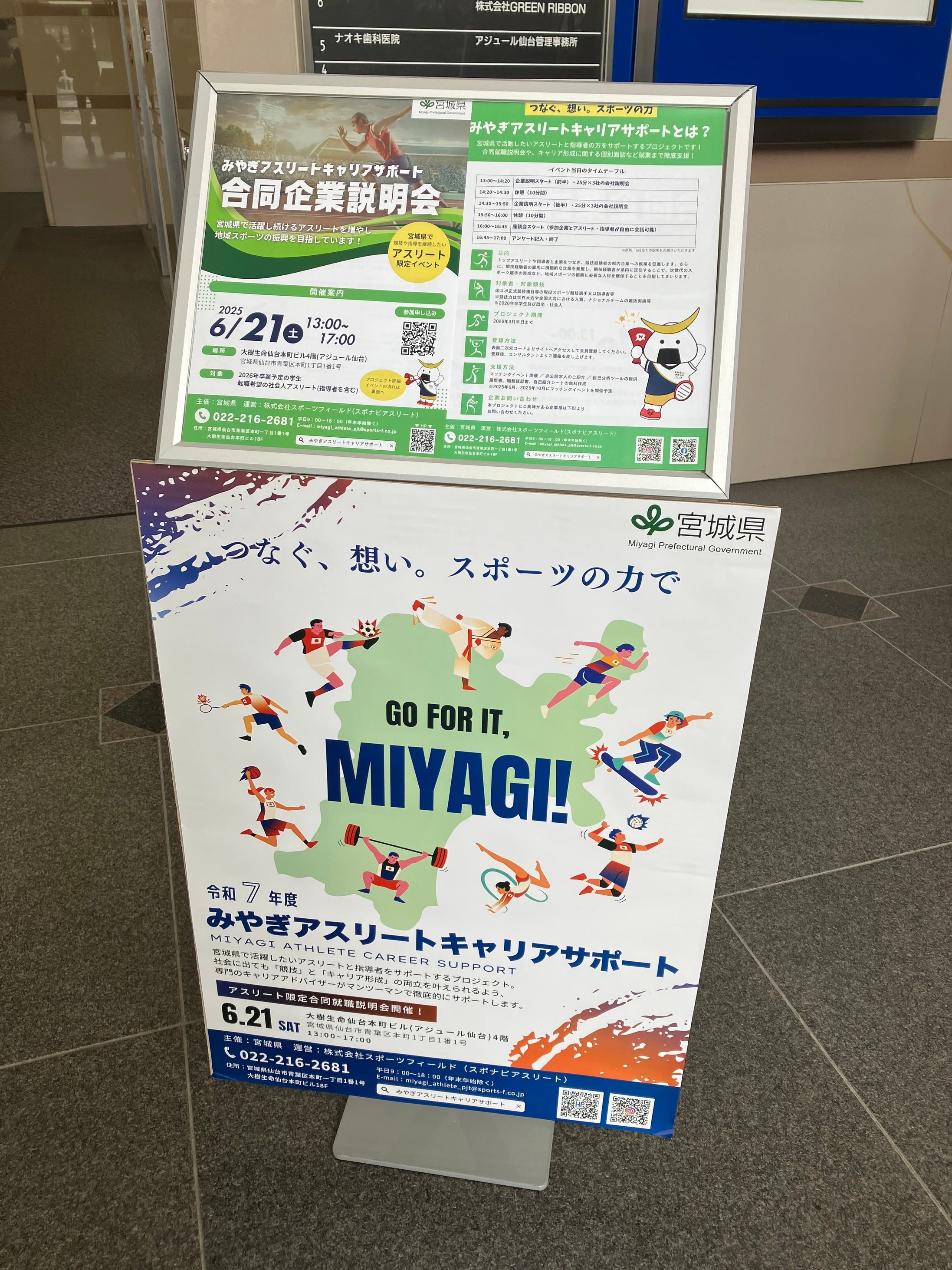 当社は、令和6年度から継続して、宮城県「スポーツ人材等確保事業業務」を受託しております。宮城県内での就職を希望するアスリートや指導者(以下「競技経験者」)と企業を繋ぐことを通して、競技経験者の県内定着及びスポーツ振興に貢献することを目指しております。このような背景のもと、競技経験者・企業双方へのフォローアップ体制の充実を図るとともに、今年度は2025年6月と10月にマッチングイベント(合同企業説明会)の開催を企画しております。