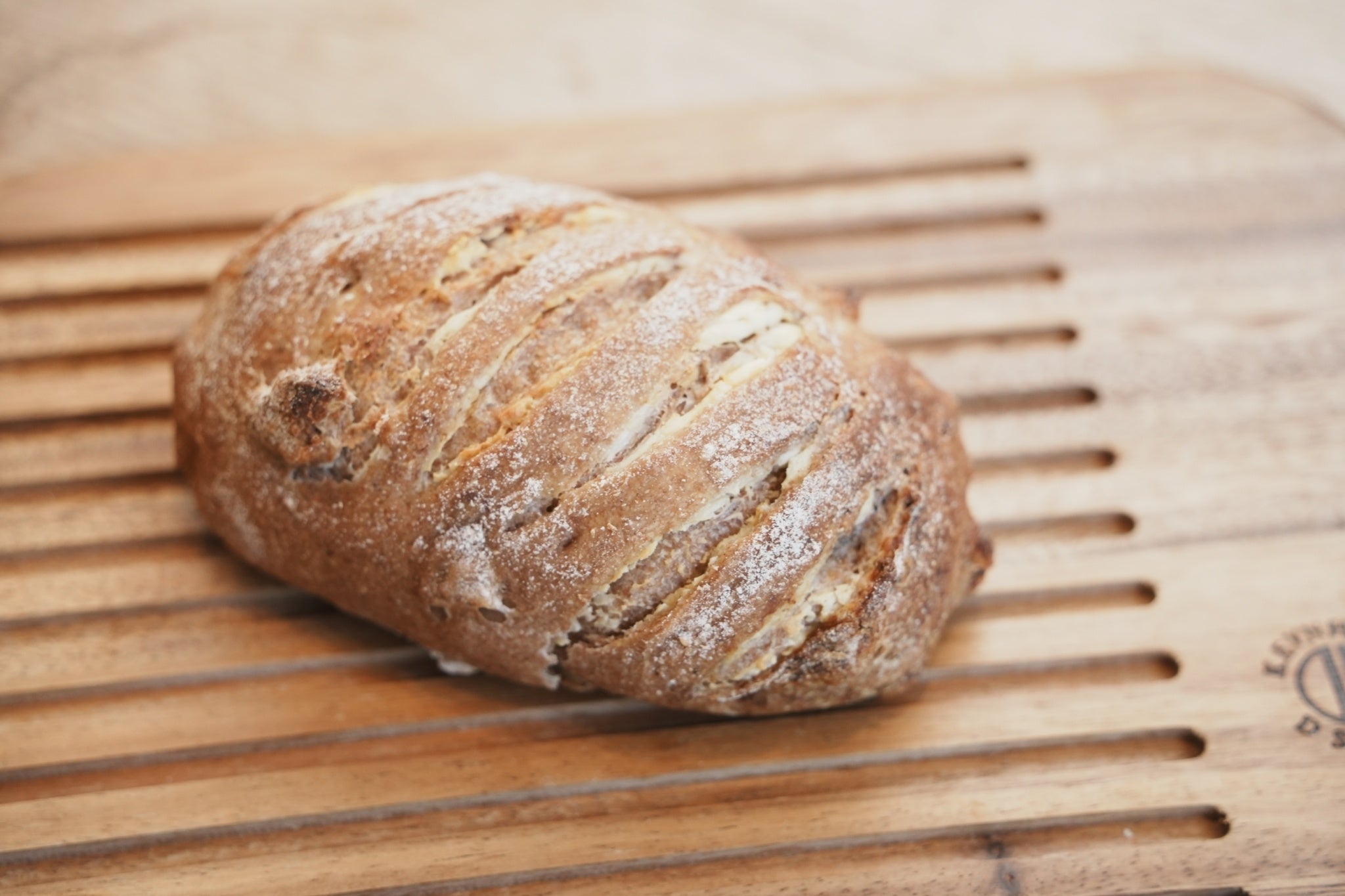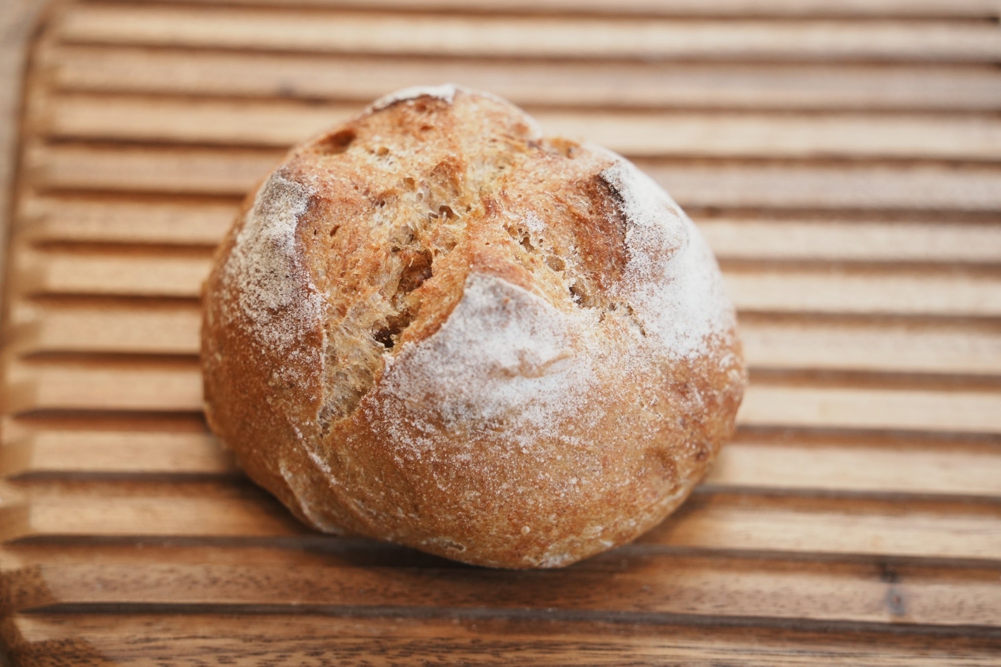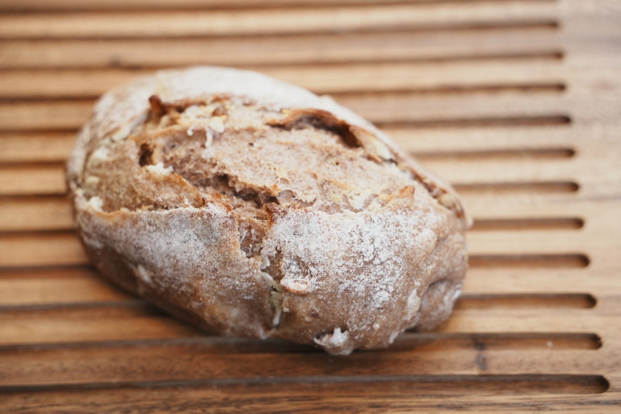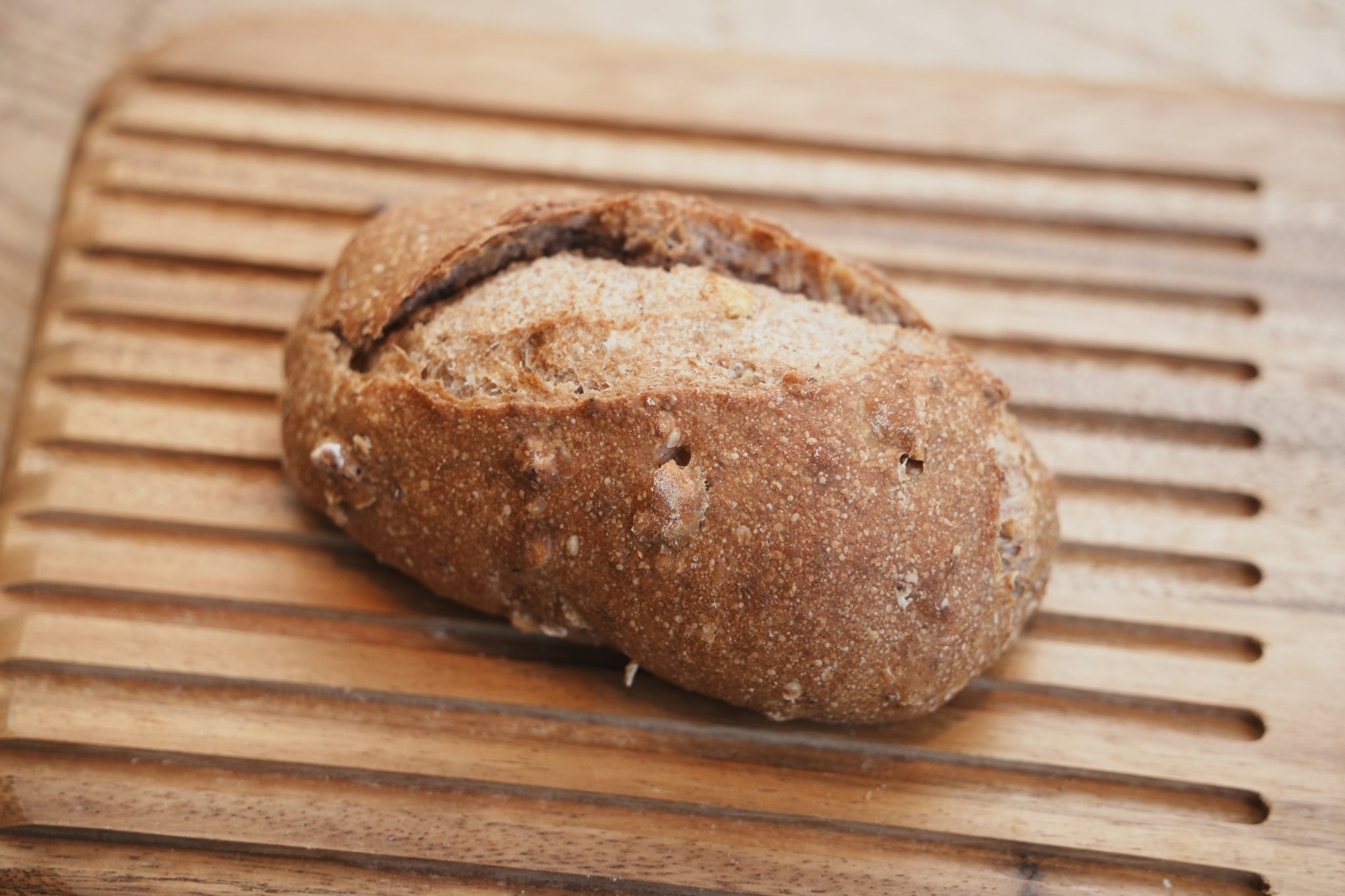 ダイエット・健康を第一に考え、卵・牛乳を使わず、GI値(食後の血糖値の上昇を示す指数)の上がりにくい全粒粉をメインに、熊本県産『ミナミノカオリ』の全粒粉・小麦粉を 100%使用。砂糖の代わりにラカントを加えるなど、添加物を最低限まで取り除いた生地を使用。アンチエイジング・美容・ダイエットへの効果、健康維持に効果のある脂肪酸が多く含まれるくるみや、腸内環境を整えるスーパーフードとしても注目されているデーツ・マルベリーは業界トップの老舗ドライフルーツ・ナッツメーカー『小島屋』から仕入れるなど材料一つ一つにもこだわり、無理なくダイエットを続けることができるよう考案されたオリジナルレシピのパンが完成いたしました。