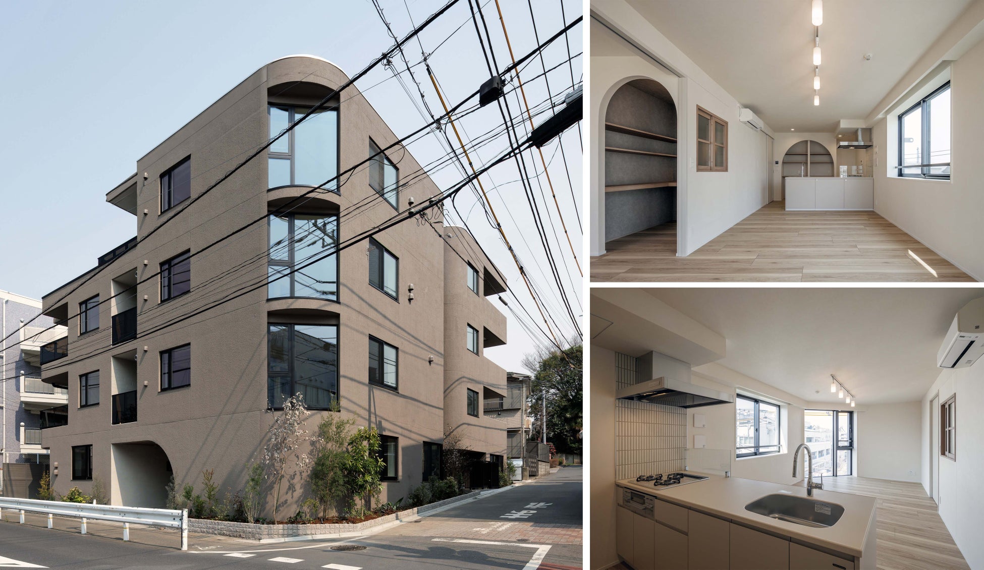 そんな利便性の高い街並みである「砧」という地名は、7~8世紀頃、布を板に打ち付けやわらかな手触りと美しい艶を出すために使用した道具「衣板」の名が転じたものと言われています。そのため、本物件ではかつてこの地で盛んに生産されていた布のような「やわらかさ」を建築デザインに取り入れ、視覚的な美しさを演出しながら、心理的な快適さや形状による機能性を備えた住空間を実現しています。