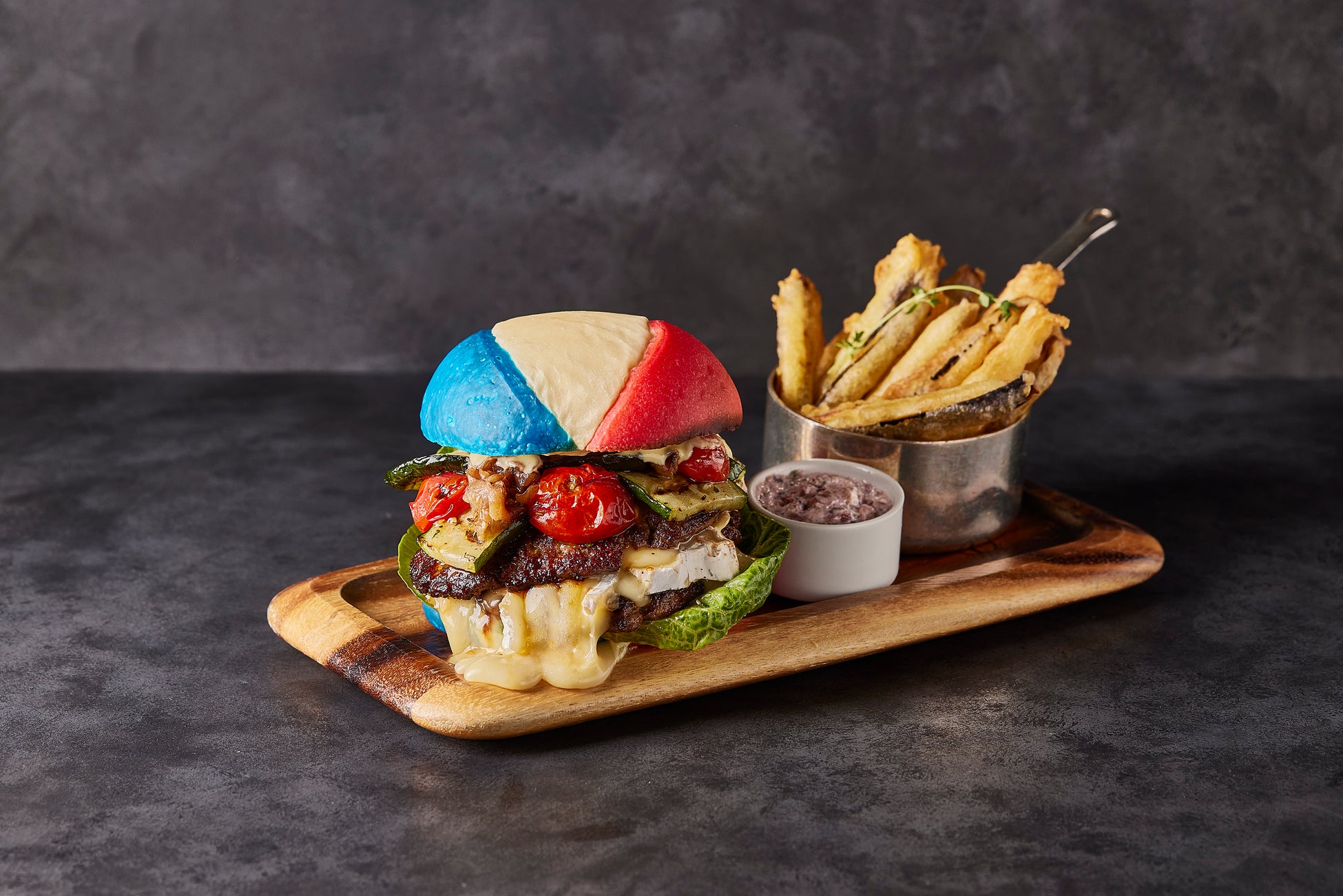 トリコロールカラーのバンズでフランス食材を豪快にサンド!この夏世界が注目するフランスをテーマにした限定グルメバーガー