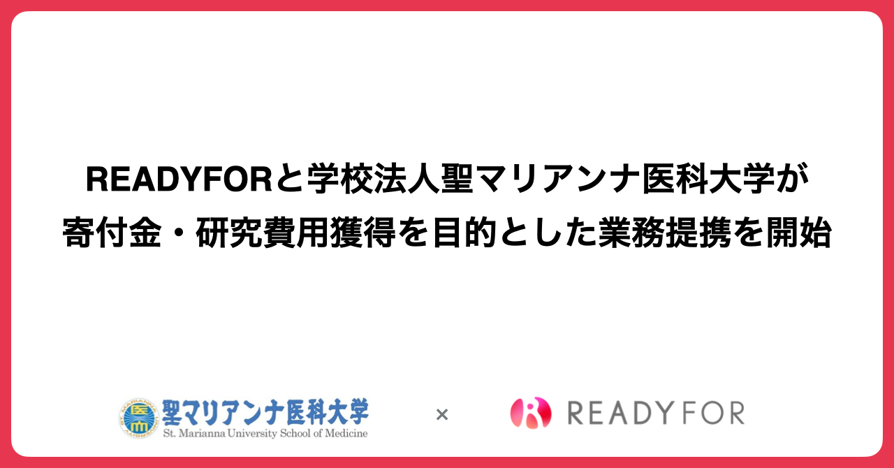 日本初・国内最大級のクラウドファンディングサービス「READYFOR」を運営するREADYFOR株式会社(本社:東京都千代田区、 代表:米良はるか)と学校法人聖マリアンナ医科大学(所在地:神奈川県川崎市、理事長:明石勝也)は業務提携を締結し、本日、提携後第一号としてクラウドファンディングプロジェクト「世界とともに歩む大規模な感染症治療研究を、日本でさらに発展させたい」を公開いたしました。