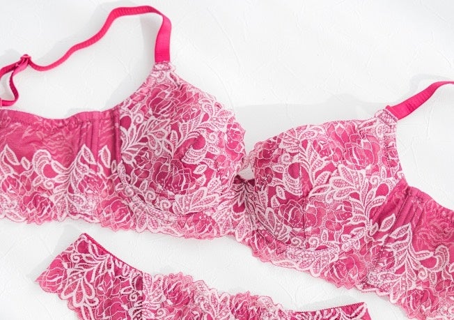 鮮やかなルビーに白いレース柄が映え、コントラストが美しいカラーリング。自分だけの好きなカラーを着れるのも下着の楽しみのひとつ。好きなカラーを仕込んで夏のファッションも楽しんでください。
