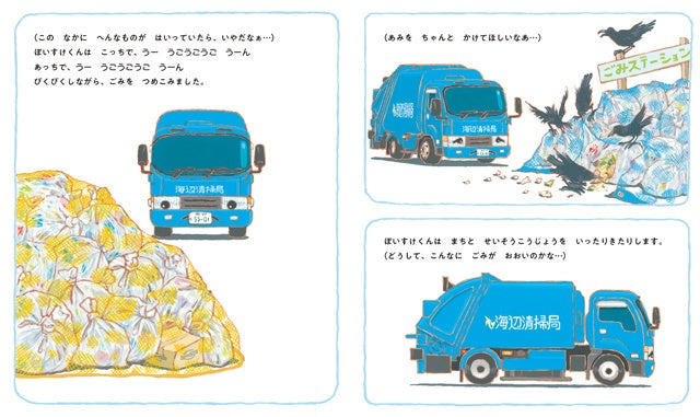 今回は、町じゅうのごみを集める収集車の「ぽいすけくん」が主役のお話です。