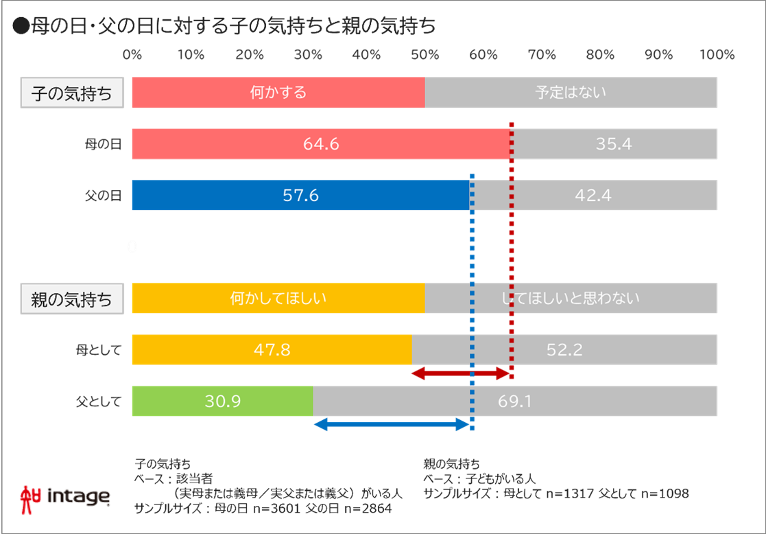 ・一方でこの日に「何かしてほしい」母は47.8%、父は30.9%にとどまる