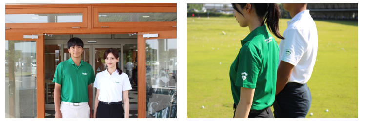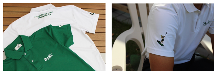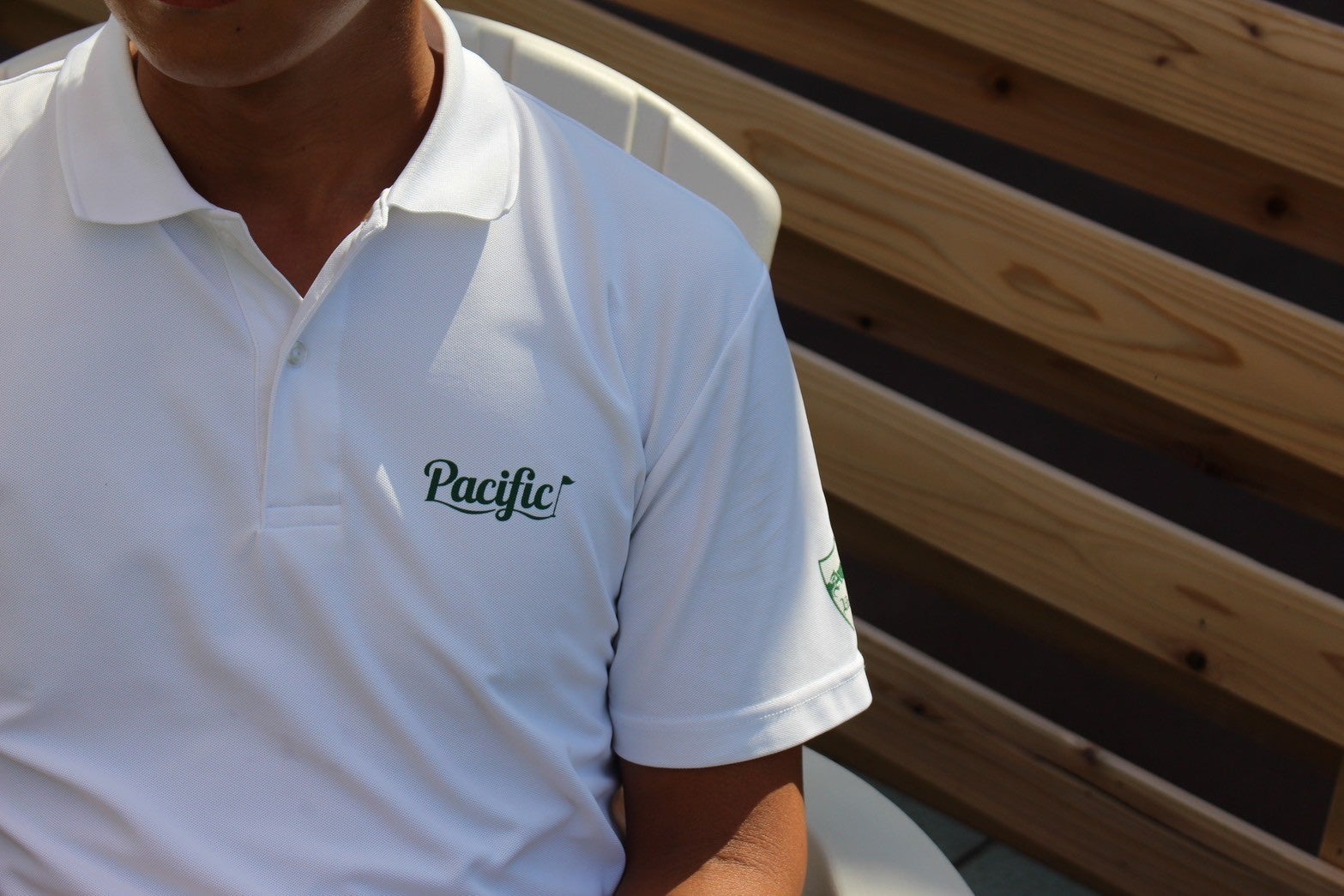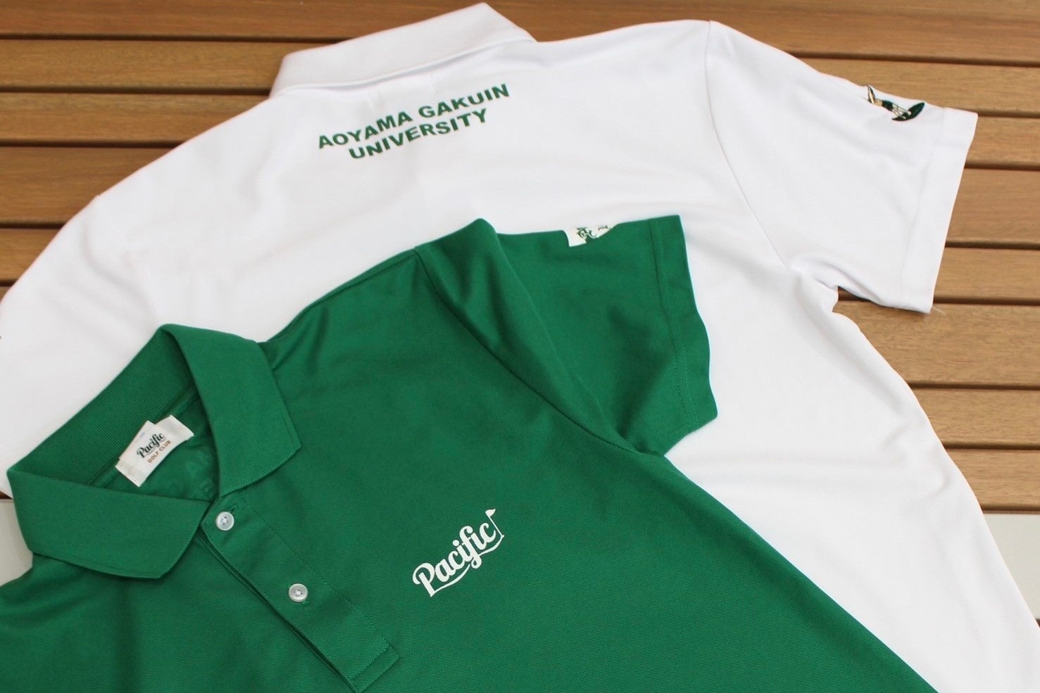 デザインは大学ゴルフ連盟の服装規定に則りつつ、〈Pacific GOLF CLUB〉のらしさ を表現。青山学院大学のスクールカラーである濃緑をキーカラーに純白ベース・濃緑ベースの二色のポロシャツを製作いたしました。