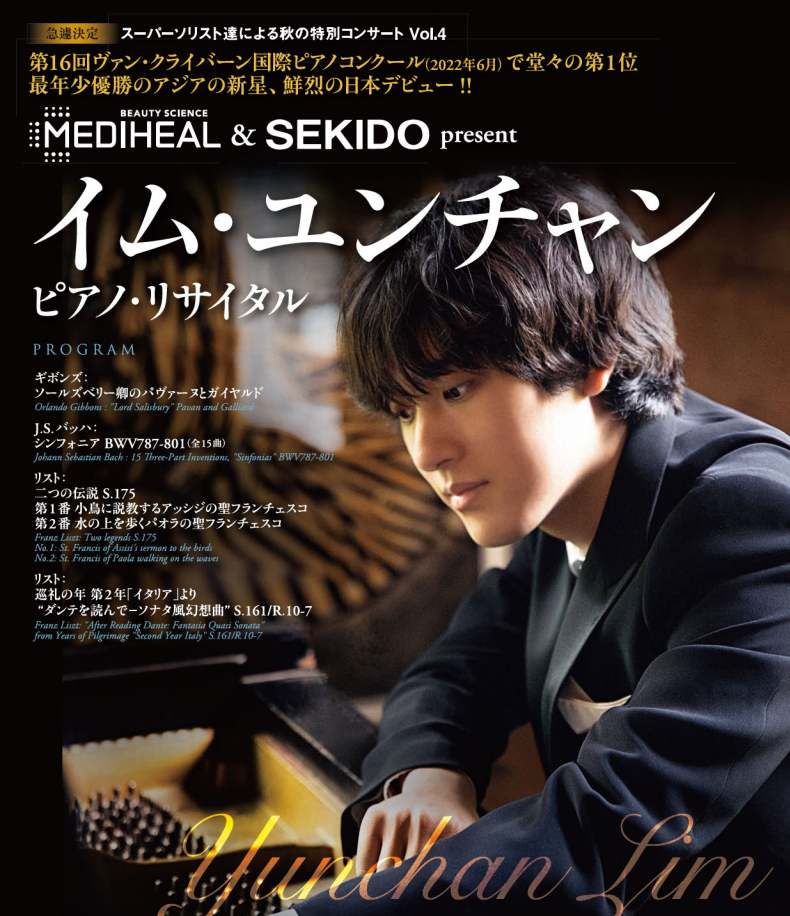 「MEDIHEAL(メディヒール)」の日本総代理店を務める株式会社セキド(本社・東京都新宿区、社長・関戸正実、証券コード:9878)では、文化・芸術・スポーツの振興支援をSDGsの一環として行なっており、2022年12月3日(土)開催の「イム・ユンチャン ピアノ・リサイタル」に協賛いたします。