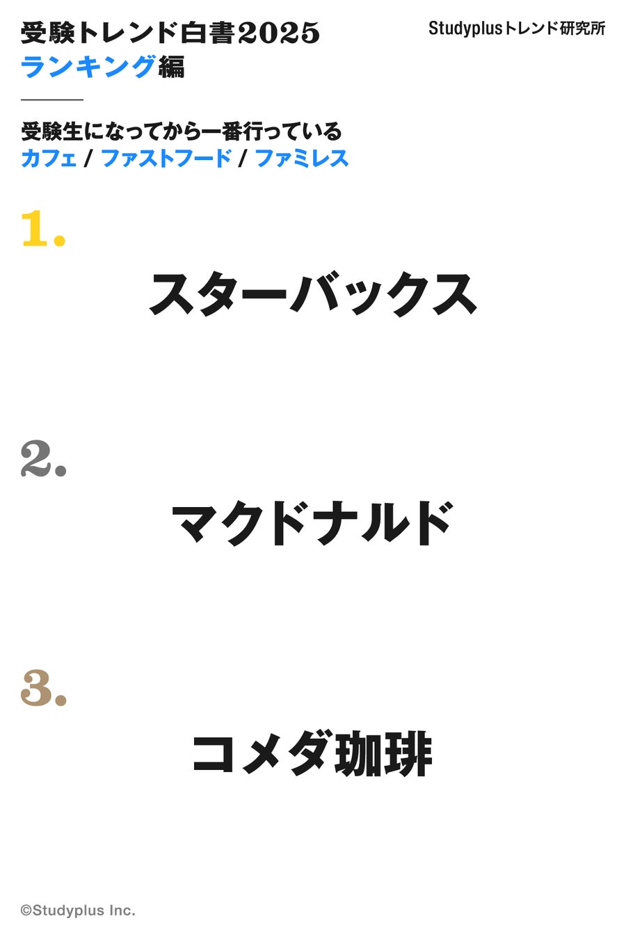 ・大学受験期に一番行ったカフェチェーン、フードチェーンはどこですか?