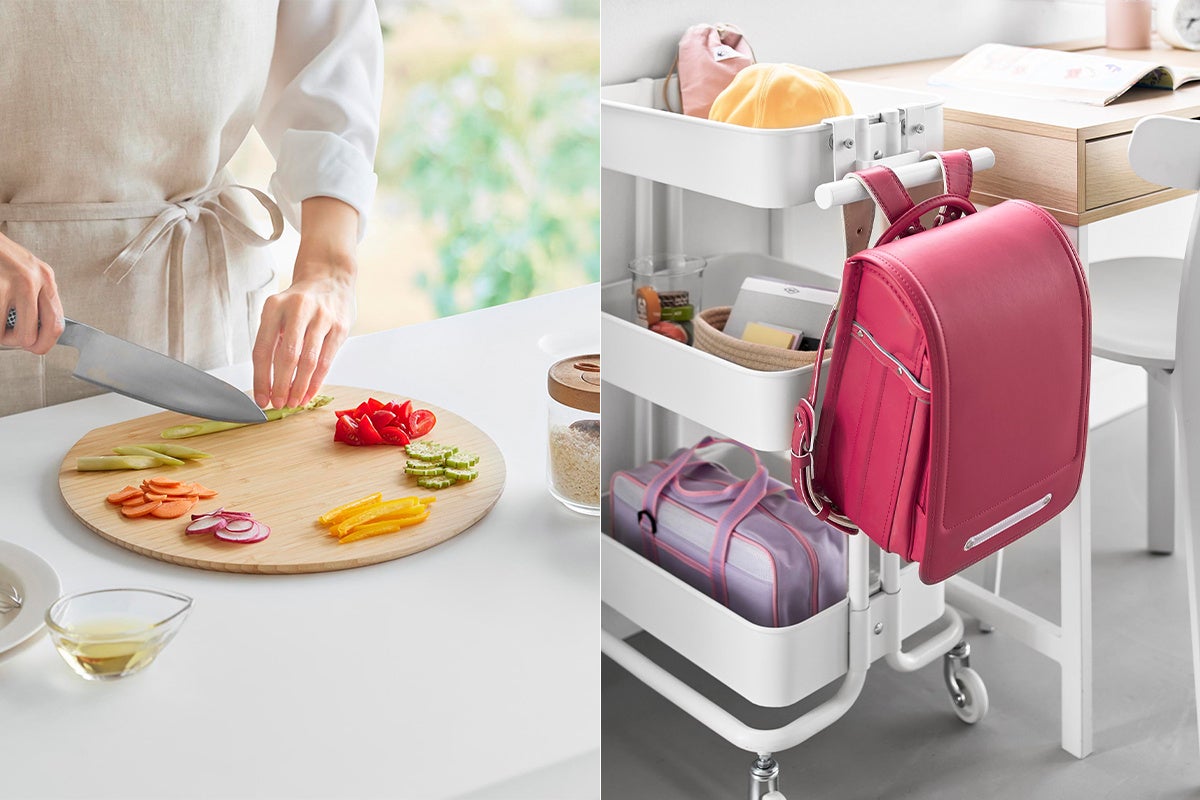 【山崎実業 新商品のお知らせ】 さまざまな食材を一度にカットできる丸いまな板や、おうちのスチールワゴンに取り付けるランドセル&リュックハンガーなど、新商品が発売になりました。