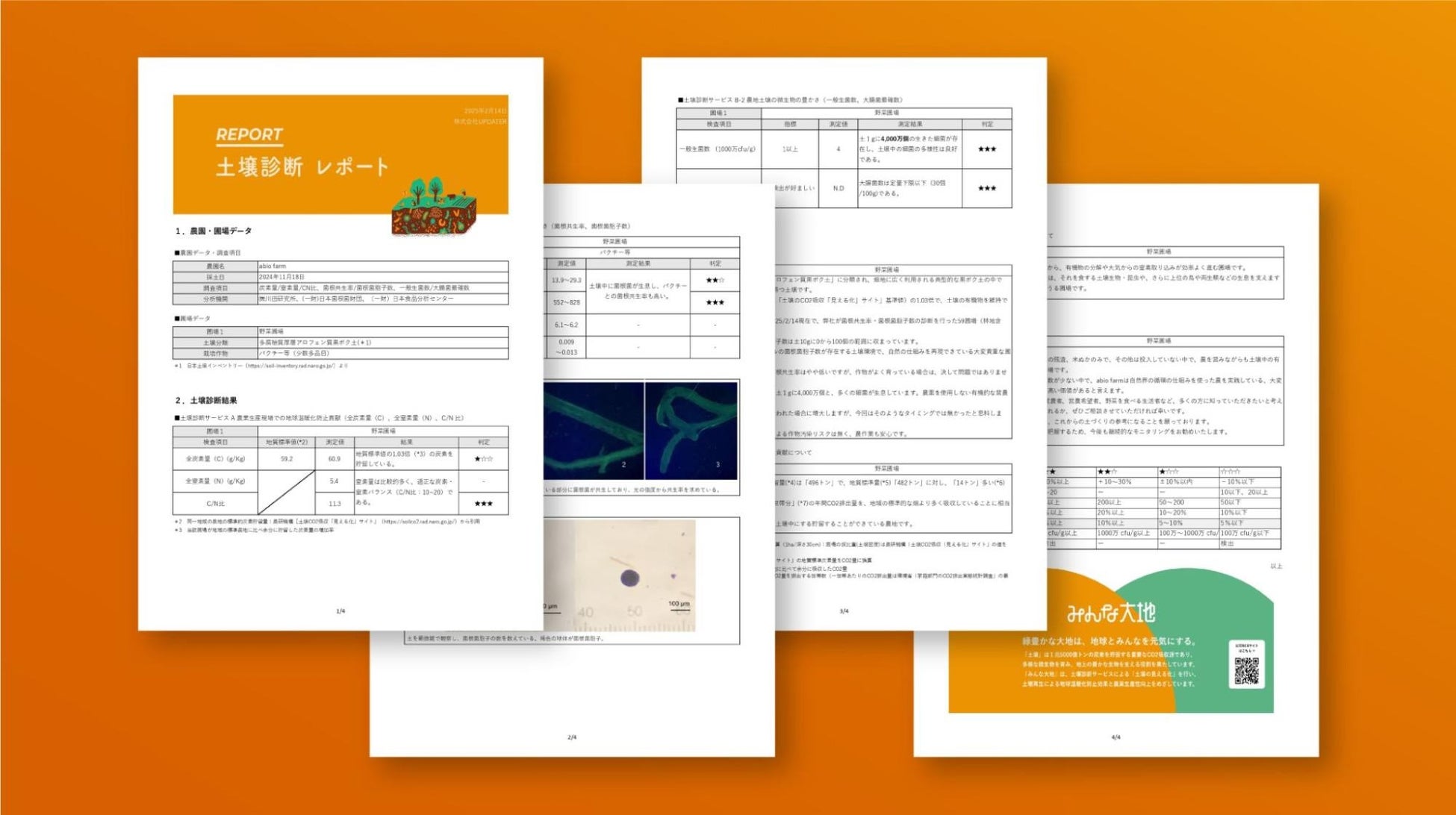 「みんな大地」は、農地や森林、再生可能エネルギーの発電所や企業の緑地等を対象に、脱炭素や生物多様性等の「地球環境への貢献度」を可視化し、生産物や不動産に新たな付加価値を付けることで、土壌再生に向けた社会全体の行動変容を促す事業です。具体的には、有機物量やバクテリア数、DNA解析などを組み合わせた独自の土壌診断や、地上・土中の動植物調査による土地評価、その結果を活用したアドバイス、コンサルティング、ソリューション提供を行っています。